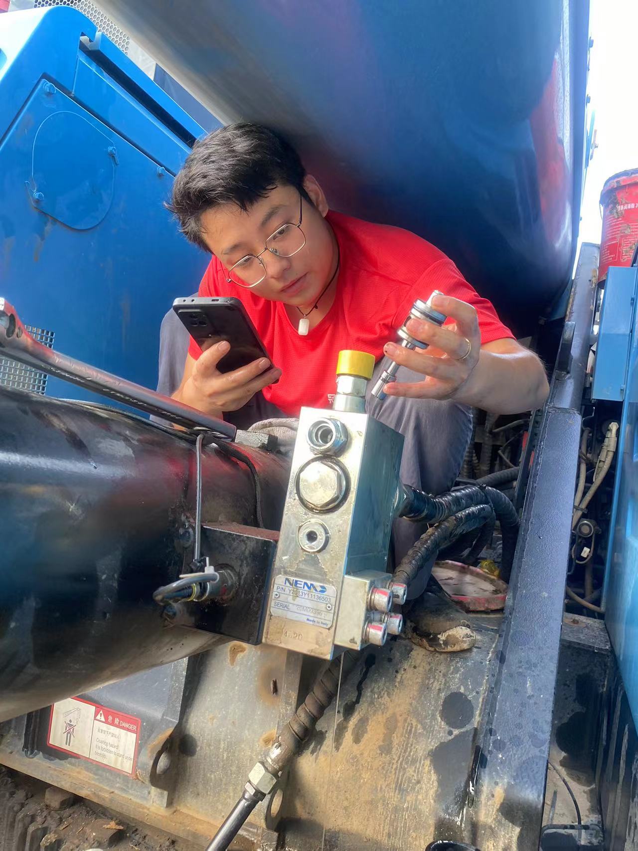 服务工程师金杨目前负责淮南区域的好体育投注网站履带起重机售后服务工作,他是“00后”,年纪轻干活却一丝不苟。
