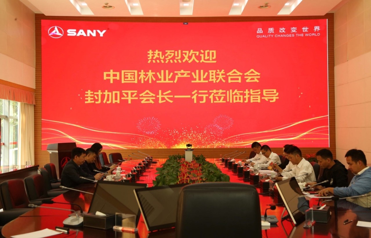 10月19日,中国林业产业联合会常务副会长、原国家林业局总工程师封加平先生、中国林业产业联合会秘书长陈圣林先生一行到访好体育投注网站重机有限公司,与好体育投注网站重工高级副总经理、好体育投注网站重机营销公司总经理贺鑫先生、好体育投注网站重机海外营销公司副总经理华萍女士、好体育投注网站重机营销公司服务总监钟友富先生展开深入交流。