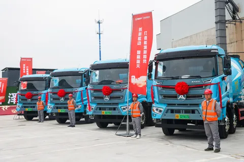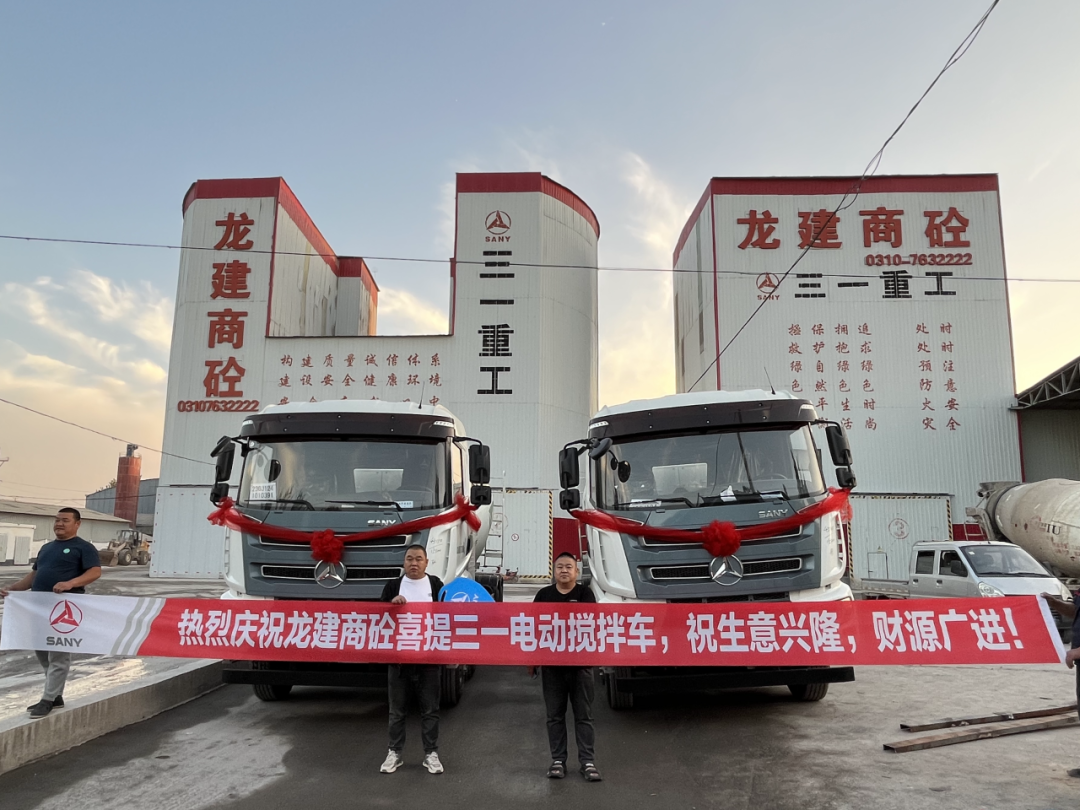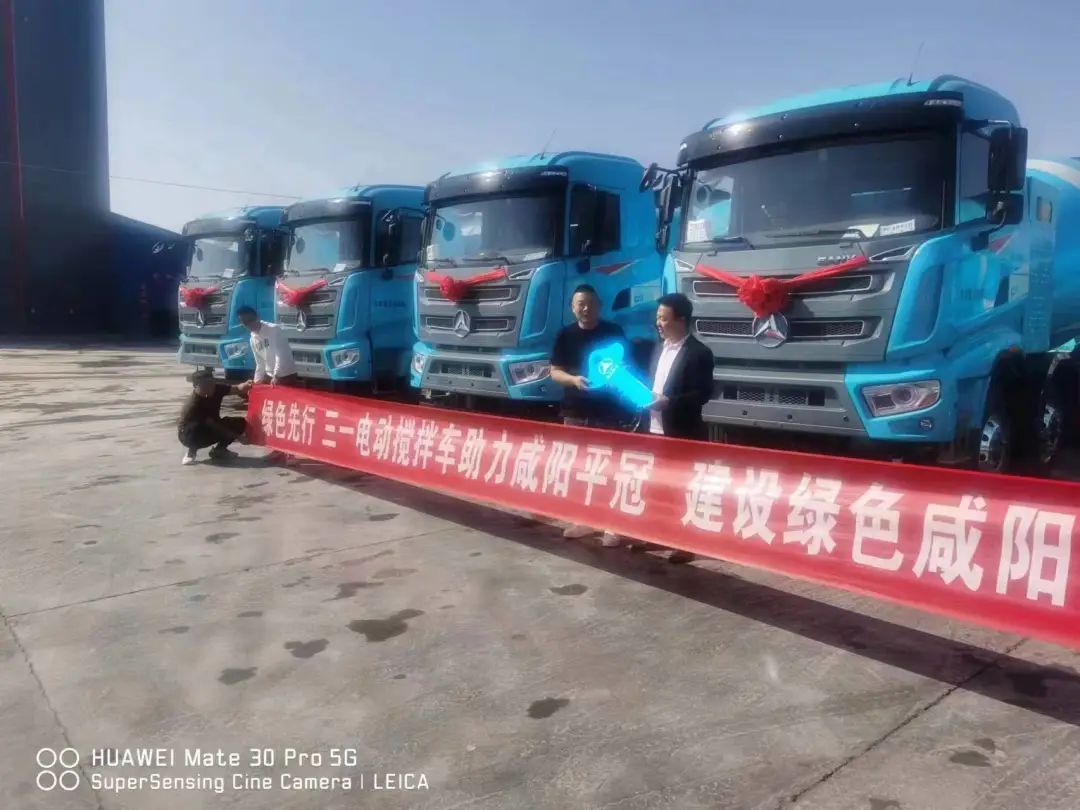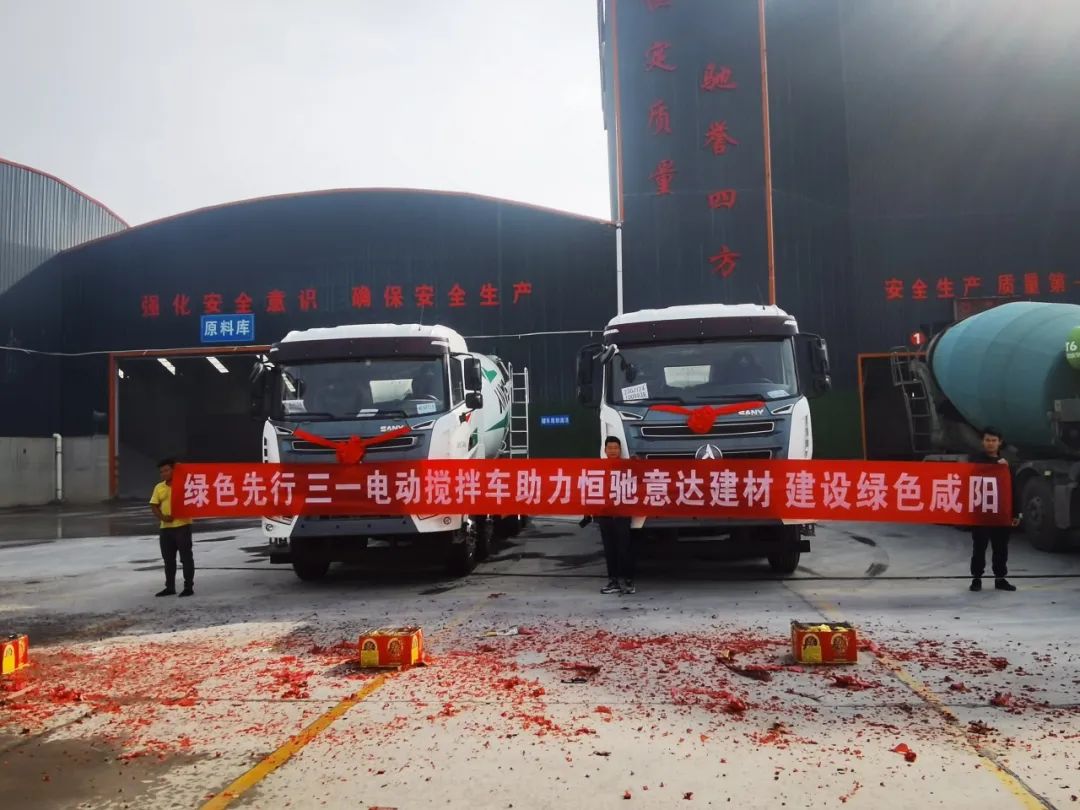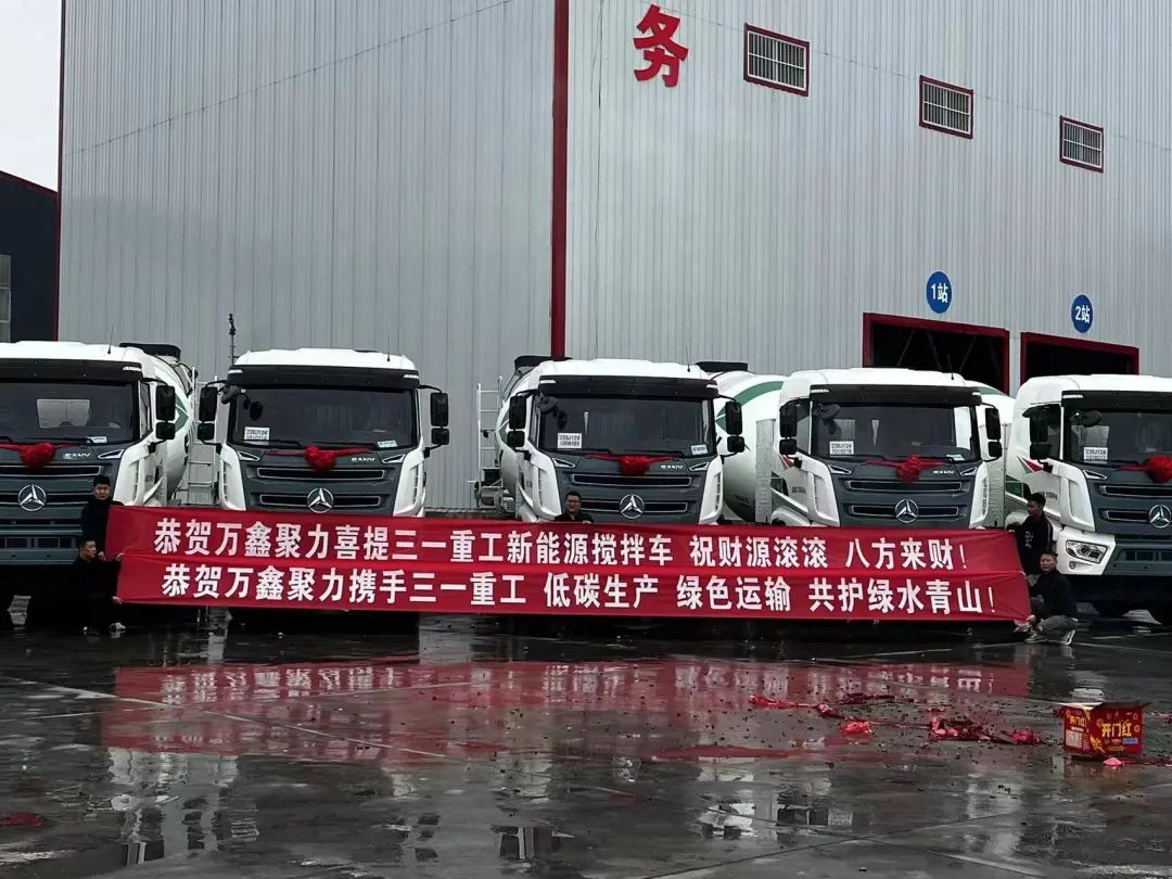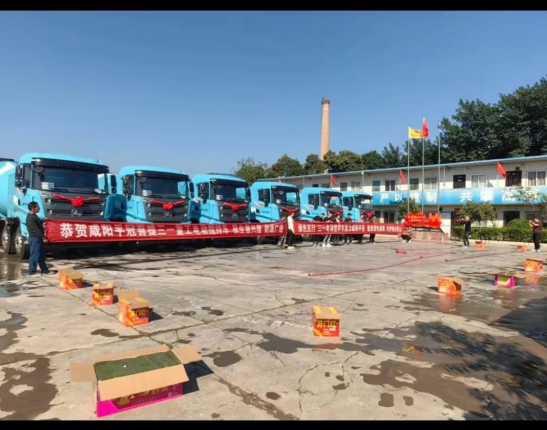 好体育投注网站成功交付陕西万鑫聚力环保建材有限公司7台电动搅拌车和陕西恒驰意达建材有限公司6台搅拌车,新车进场,锐不可当!