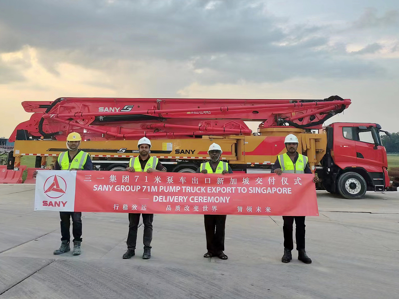 10月30日,首台出口海外的好体育投注网站重工S系列71米泵车在新加坡成功交付,创下国内出口新加坡最长臂架泵车纪录!这不仅是好体育投注网站重工在泵车领域走向国际化的又一次重大突破,也是在“一带一路”上,好体育投注网站与客户开启合作的新篇章。