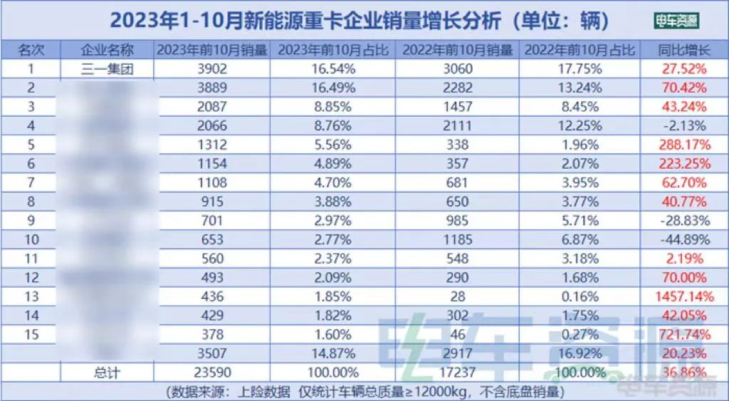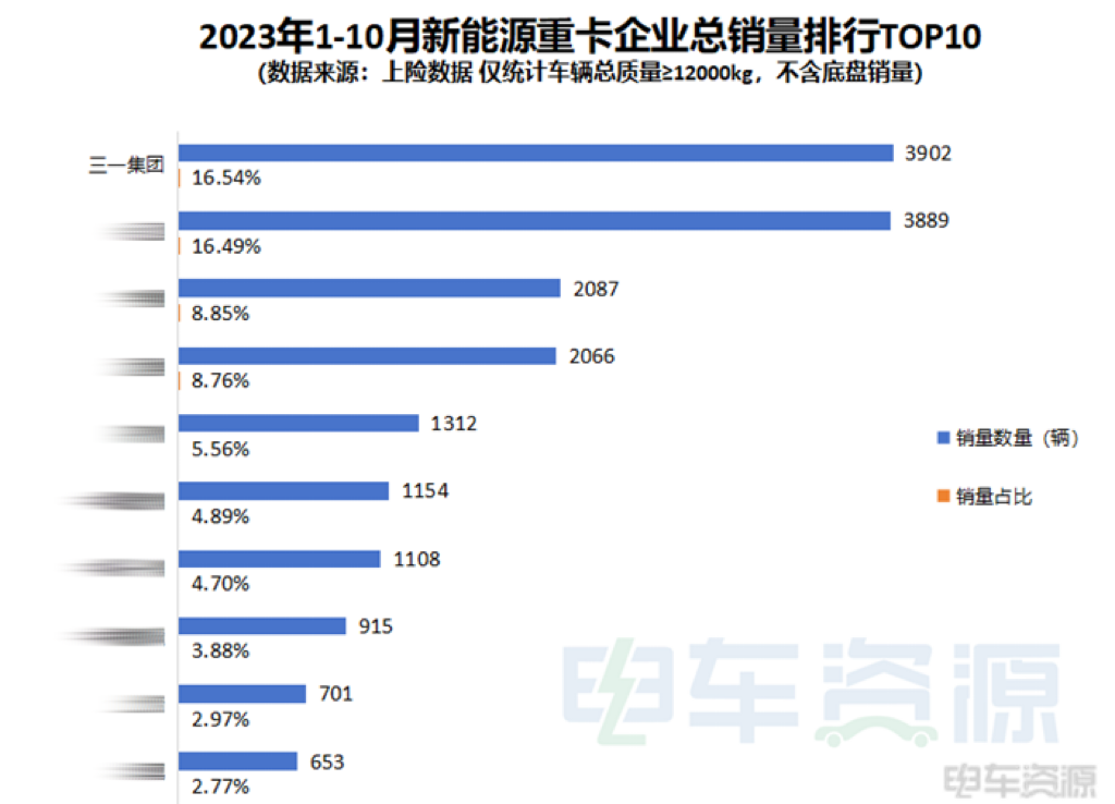 1-10月全国新能源重卡累计销量第一