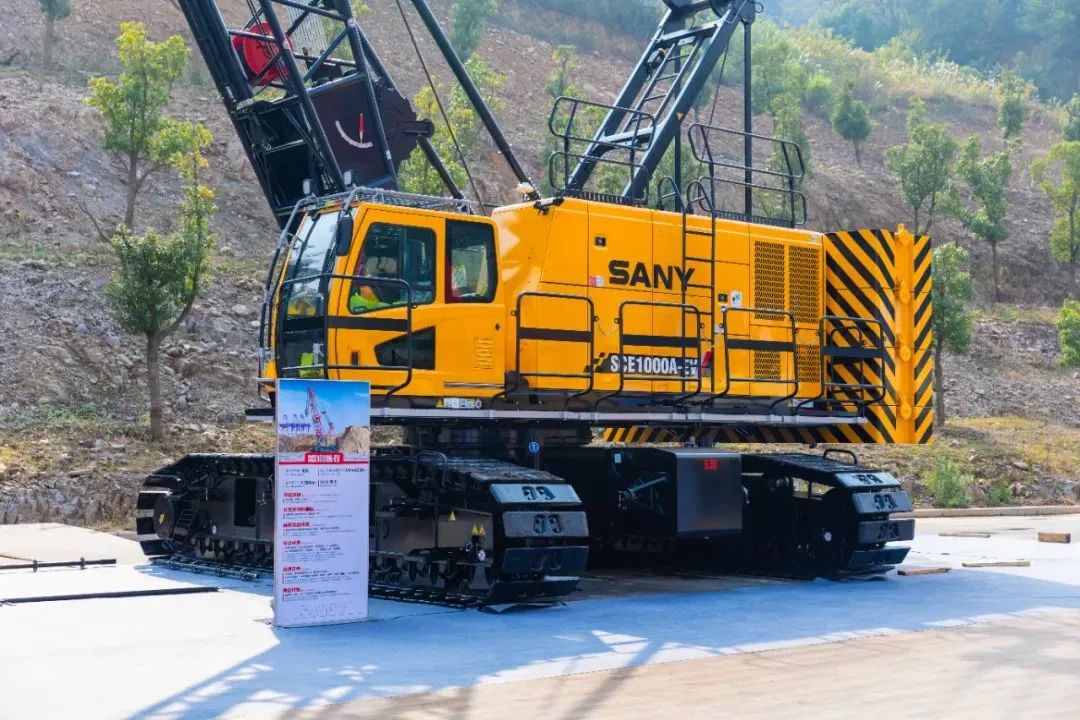 SCE1000A-EV,是100吨级纯电驱动履带起重机。配备282kW·h的大电量动力电池,续航时长超过8小时;和传统的燃油机型相比,能降低37%的能源使用成本;支持多功率交流充电和直流快充,最快2小时充满;高压安全设计,BMS实时绝缘监测,用电作业更安全;目前已成功销往荷兰,实现出口。