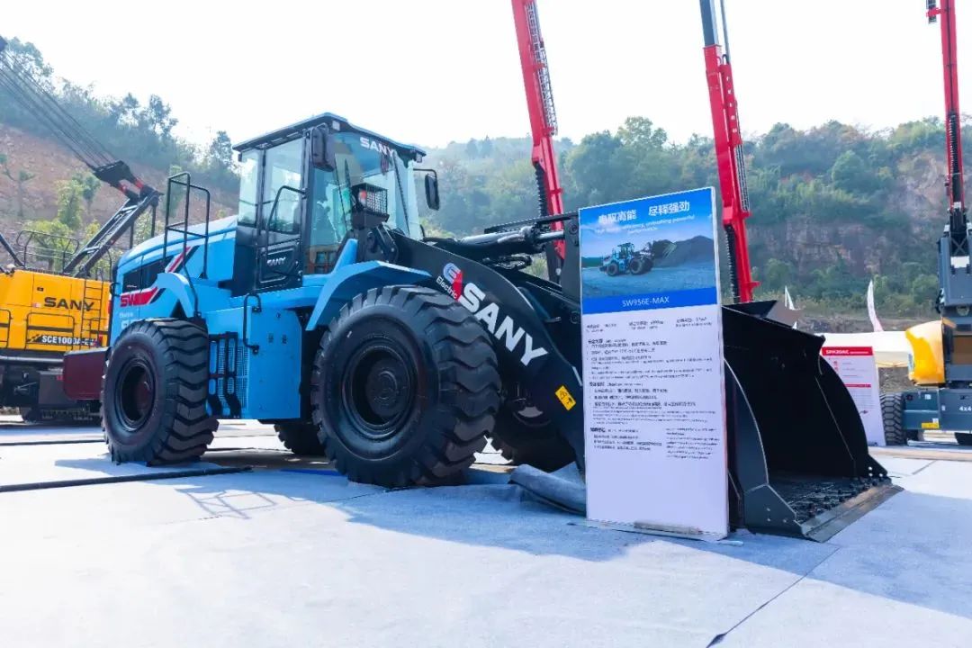 展会现场,全新打造的5.8T级全能型电动装载机SW956E-MAX震撼亮相,专为中重载工况设计,最大牵引力可达180kN;自主研发高效两档变速箱,侵略式换向、换挡顺滑;轻松应对-30℃~50℃的恶劣工况。