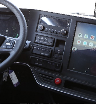 329驾驶室更新按键位置,缩短驾驶员与按键的距离,驾驶员在行驶过程中操作按键更加方便,行驶过程更安全。