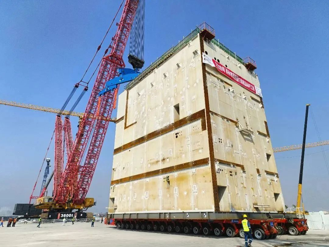 CA20模块是廉江核电一期工程首个吊装的大型模块,位于核岛辅助厂房5、6区,结构模块整体呈长方体型,模块长20.6米、宽14.2米、高21米,模块总重893吨,起吊总重约为1049吨。