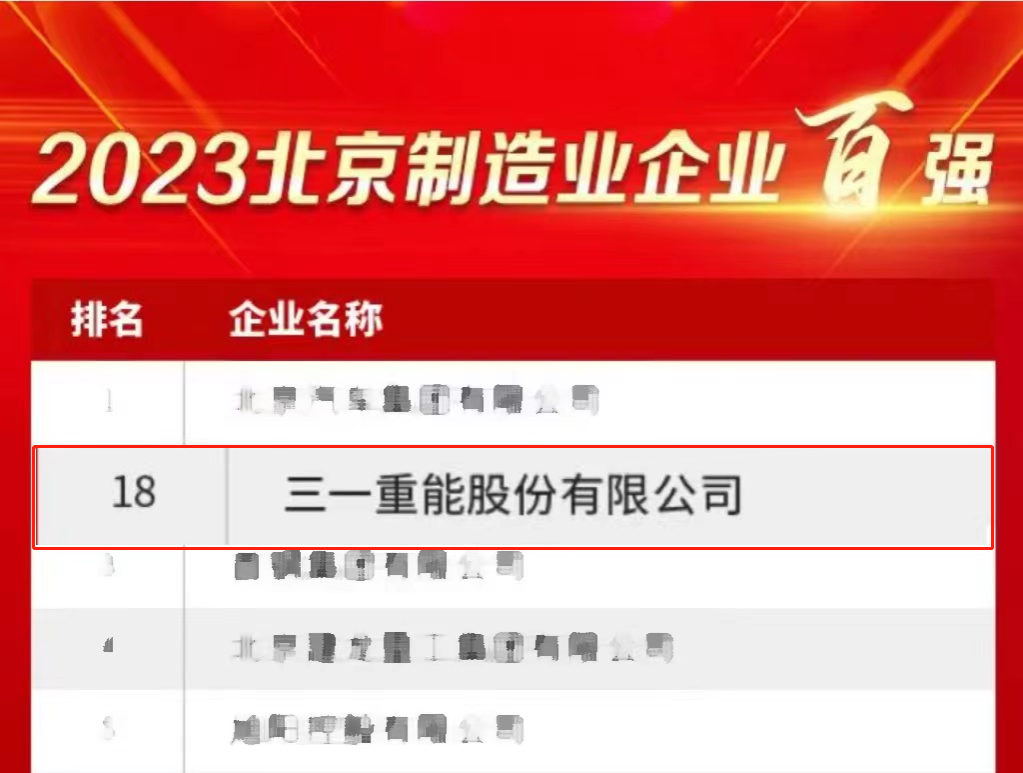 近日,北京企业联合会、北京市企业家协会正式揭晓了“2023北京企业100强”榜单,好体育投注网站重能荣登“2023北京企业百强榜单”、“2023北京制造业企业百强榜单”。
