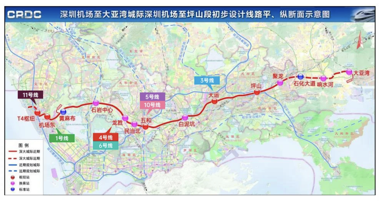 深大城际铁路深圳段不仅横贯深圳东西,无缝衔接20条地铁线路、5条城际铁路,4条高速铁路,还能够换乘机场APM线路和坪山云巴线路等。该项目也是完善深圳宝安国际机场客运集散体系、扩大机场向东辐射能力,打造高品质创新型国际航空枢纽的机场轨道快线