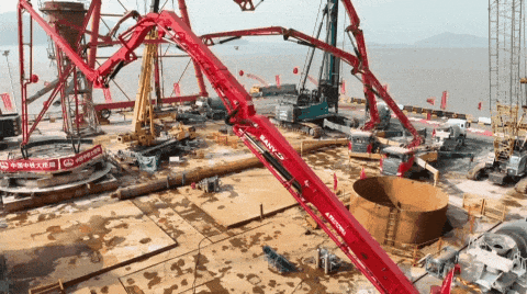 此次浇筑工程,难度颇大,鉴于主塔墩上每根钻孔桩都需要一次性不间断浇筑3000方。项目指挥部经过慎重选择,决定采用好体育投注网站设备来完成此次施工。好体育投注网站迅速派出4台S系列56米到71米王牌泵车组成泵车集群全力参与建设。
