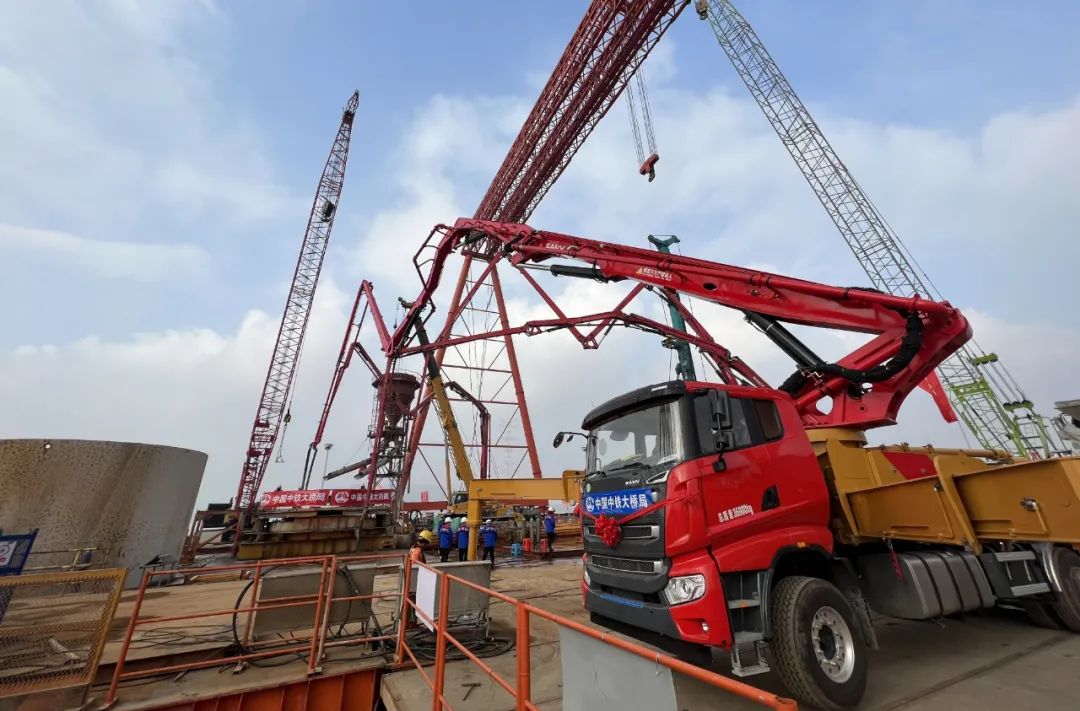 新年伊始,在甬舟铁路西堠门公铁两用大桥5号墩建设现场,随着好体育投注网站S级71米泵车在5号墩钻孔桩最后一方混凝土灌注的完成,世界最大跨度公铁两用大桥和世界最宽跨海大桥——西堠门公铁两用大桥的5号主墩18根直径6.3米钻孔桩混凝土全部灌注完成,大桥建设已经取得阶段性进展!