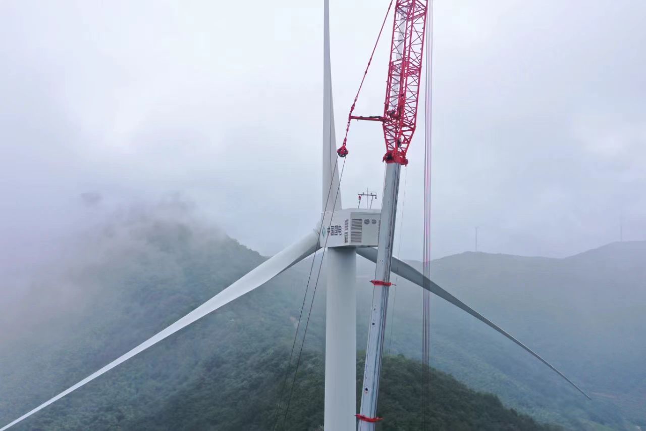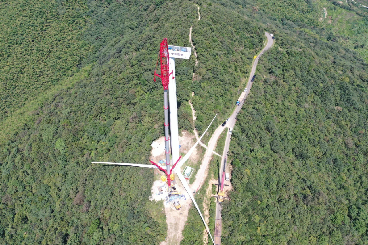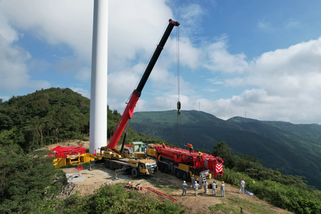 白岩山风电场,最高海拔628米,山路崎岖,弯绕陡峭,光是上山就已经让很多吊装设备望而却步。