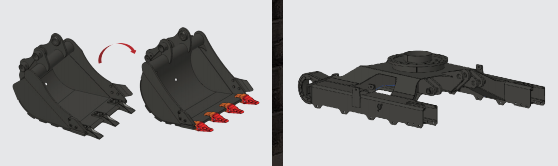 铲斗升级,武装到“牙齿”。斗容由0.06m³增至0.07m³。斗齿由3齿增至4齿,并由栓接升级为销接,效率更高,寿命更长,更换更容易。通过对整机稳定性分析,设计单边4支重轮结构,科学合理分配轮距,优化导向轮座结构,有效提升整机稳定性。
