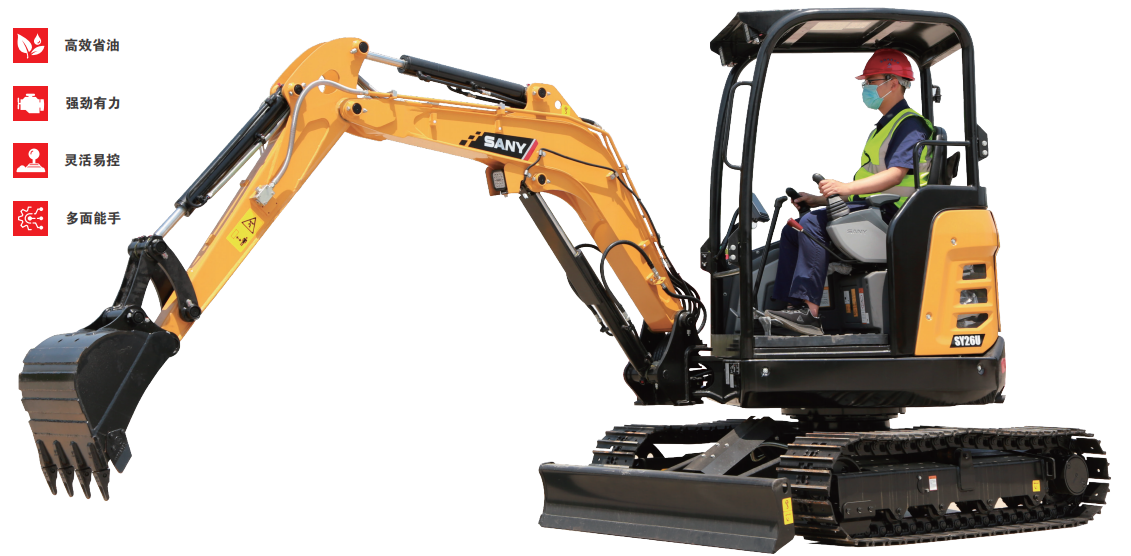 SY26U是好体育投注网站重机倾力打造的一款2-3T级微型挖掘机产品,其身形小巧,无尾回转,适应多种狭窄工况。可选配多种属具与配置,实现一机多用,为客户创造更大价值。SY26U 国四机围绕“新动力”、“新造型”、“新技术”全面升级,其灵活易控、安全环保、维护方便,适用于房屋改造,沟渠开凿,园林绿化,蔬菜大棚,农田果园等小型工程。