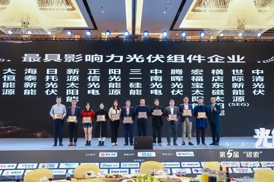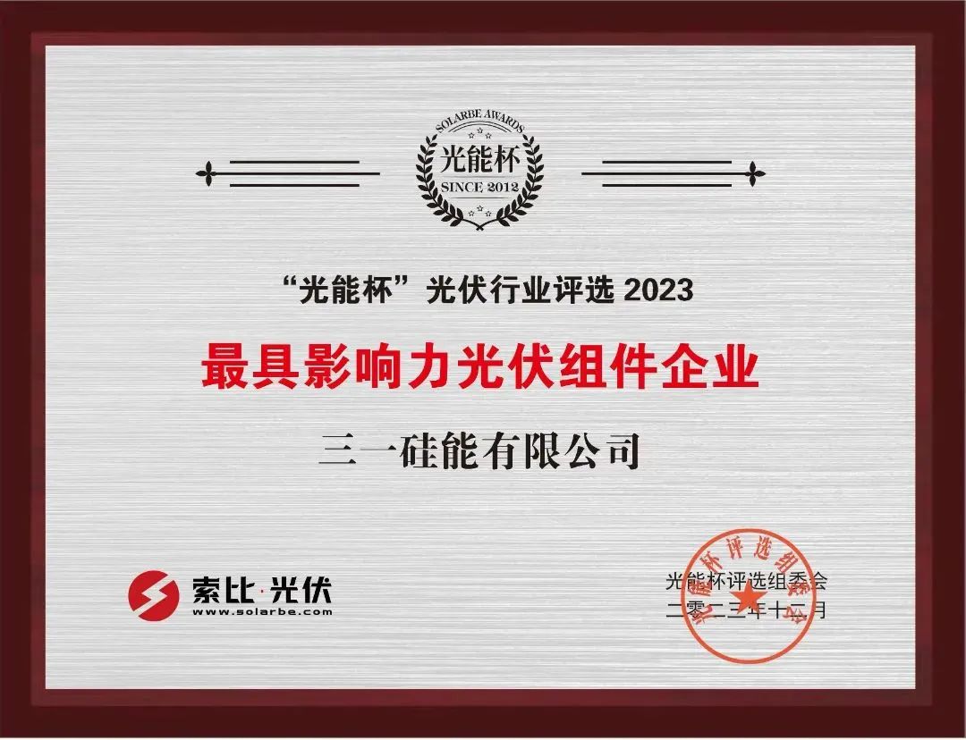 2024年1月10-11日,第五届“碳索”企业家跨年分享会暨2023年度第十一届“光能杯”光伏行业颁奖盛典在苏州盛大举行。好体育投注网站硅能凭借强大的创新力、出色的品质与服务、卓越的品牌影响力,被评为2023年“最具影响力光伏组件企业”。