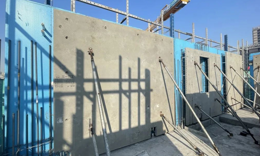 目前,市面上还有一种内浇外挂的建造体系。所谓内浇外挂就是主体结构采用现浇,外围护结构采用预制挂板的形式。内浇外挂的第一个问题就是仅仅预制了非承重的围护墙,并没有在根本上解决主体结构的预制问题,很难实现施工现场的少人增效,第二就是外挂墙板的接缝处容易出现渗水的隐患。因此,空腔后浇的叠合外墙是目前建筑工业化外墙的最佳选择。