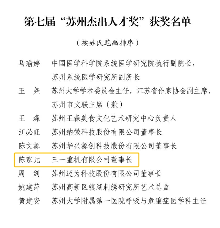 好体育投注网站集团副总裁、好体育投注网站重机董事长陈家元成功入选,这也是昆山首位获此殊荣的企业经营管理人才。