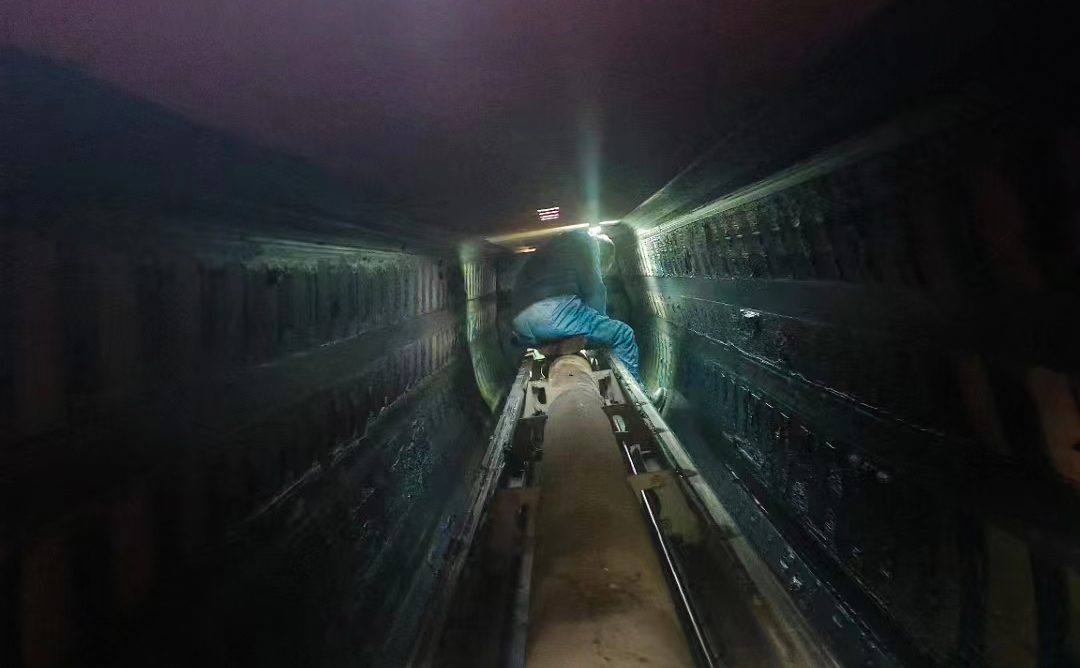 准备就绪,吴善栋拿起扳手就一溜烟钻进了大臂里面,开始进行故障排查。他介绍到:“根据之前和操作手的对话,我大致确定这次大臂漏油是因为设备长期使用,大臂来回震动使油路的阀门松动,属于常规故障。等我进去一看,果不其然。”