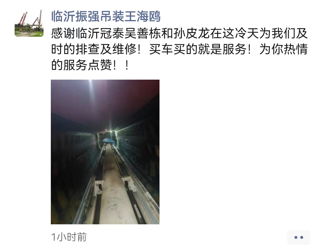 临沂振强吊装有限公司王子强说:“当天温度很低,加上刮风,大臂都是冰手的,但他为了节省时间,穿着单薄的衣服就上场了。我看到他有些发抖,就想让他先进屋暖和暖和,但他坚持先干完活再说,直到故障完全排除,他才穿上袄。”