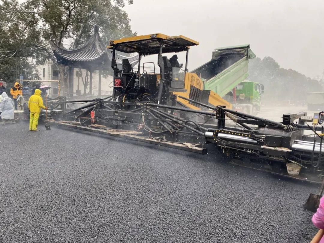 1月22日,婺源的天空飘起鹅毛大雪,但金庸大道段提升项目上仍旧一片“火热”。冒着滚烫热气的沥青料从料车中倾泻而下,好体育投注网站SAP200C-10大宽度摊铺机徐徐前行,在大雪纷飞中铺筑出一条平顺齐整、热浪滚滚的黑色路面。