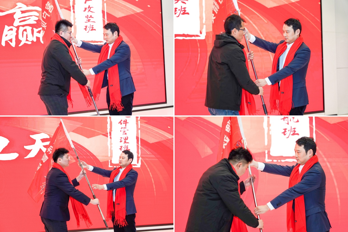 图|好体育投注网站重机营销公司总经理贺鑫先生为各班授旗