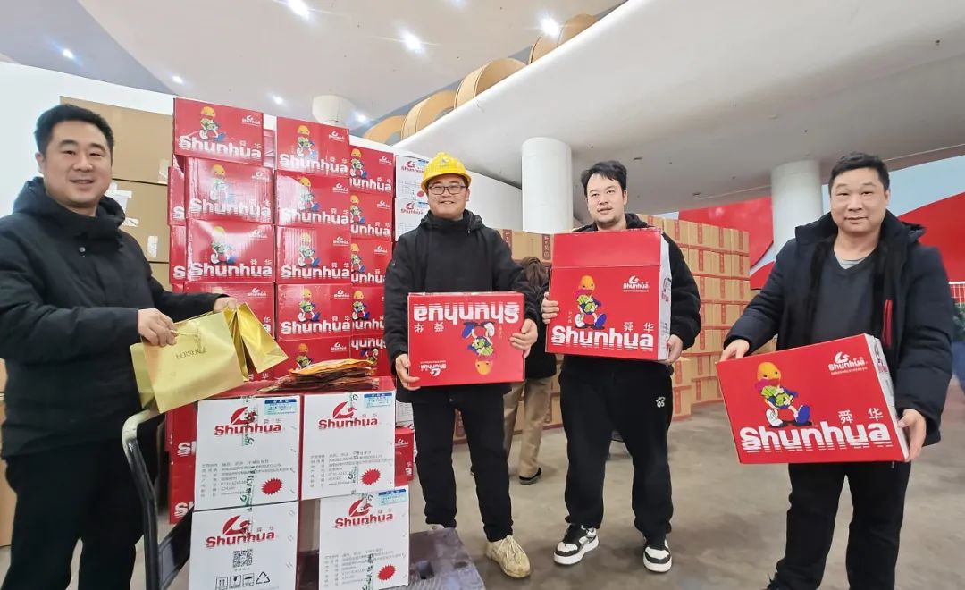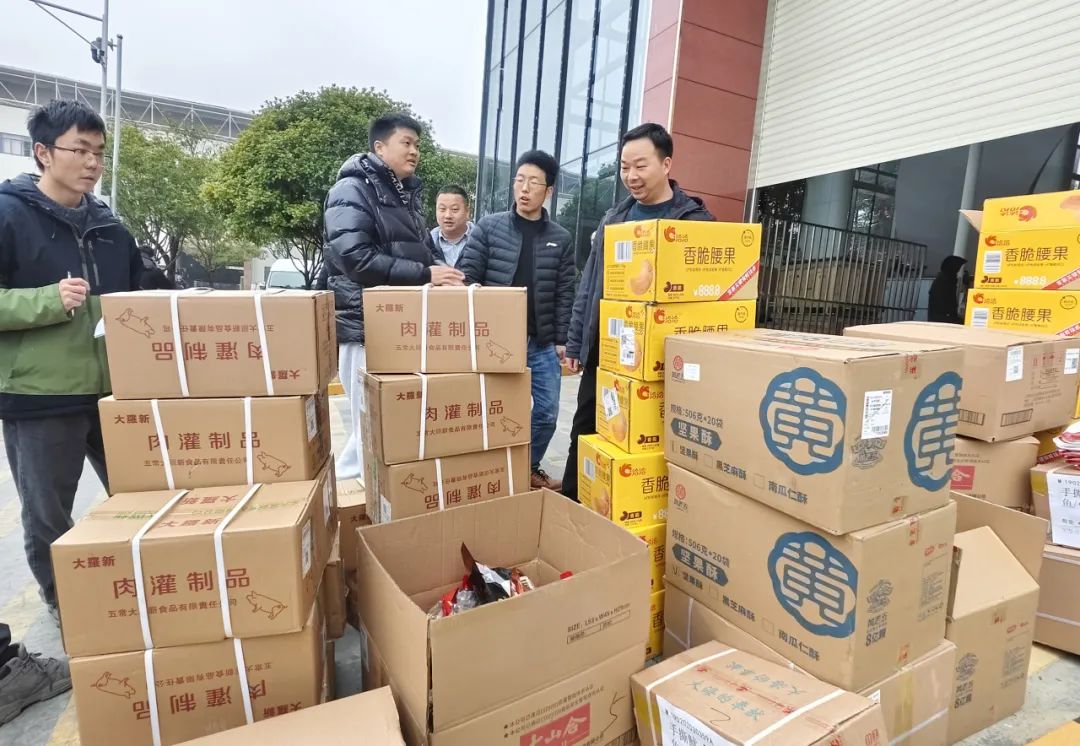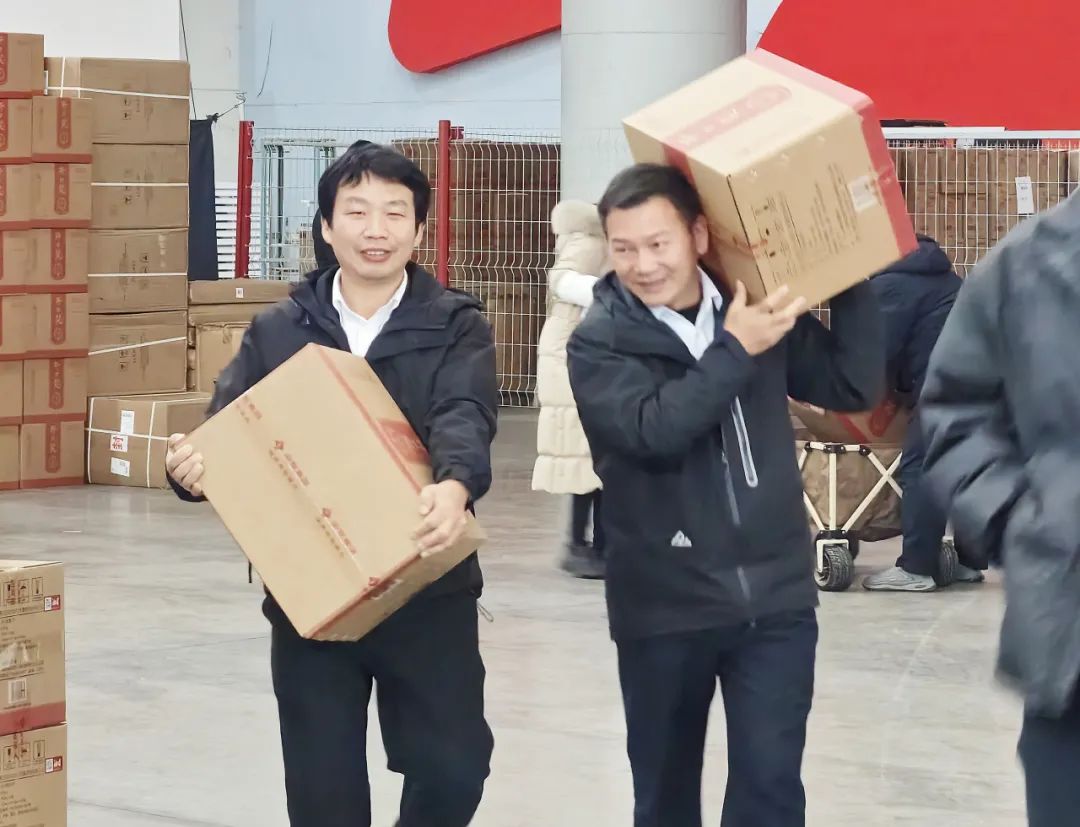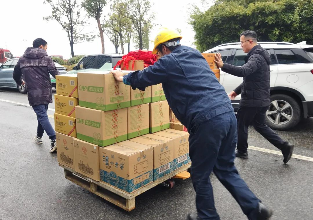 现场,前来领取年货物资的人群络绎不绝,核对数量、招呼帮手的声音不绝于耳,手搬肩扛的身影忙碌不停,被堆成了小山的小推车来回穿梭,共同构成了一派热气腾腾的景象。