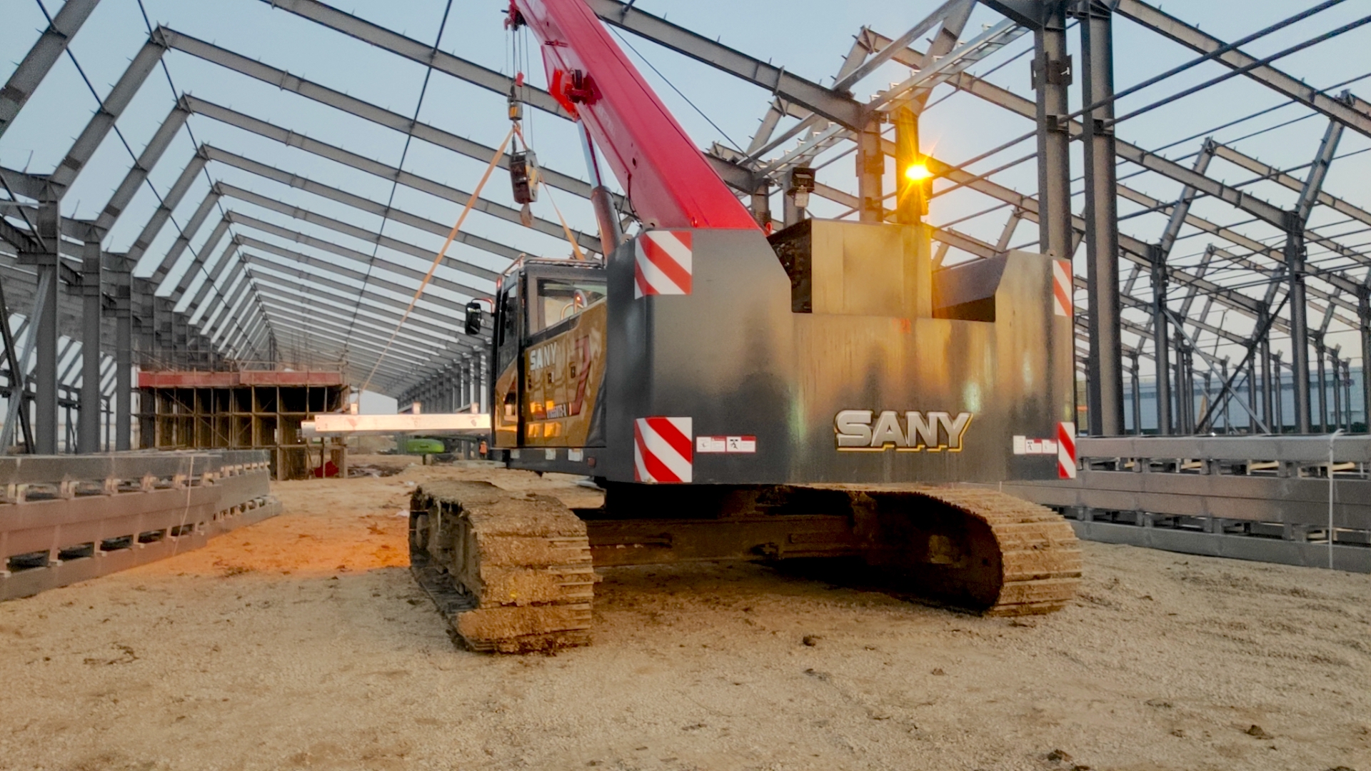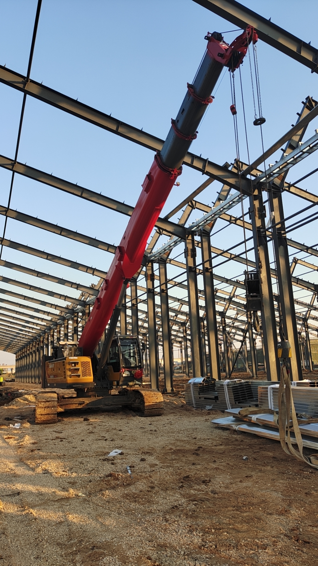 去年9月,怀远县华强建筑工程有限公司董事长龚根卓购买了一台STB300T5-8伸缩臂履带起重机。这台设备刚到家,就被运往蚌埠市,参与当地一个液压钢结构厂房的建设任务。