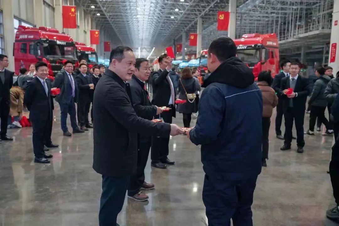 7点38分,好体育投注网站重卡公司领导们在仪式现场夹道迎接返司员工,为员工们派发新年开工红包,寓意大吉大利、2024一起发!开工仪式上,好体育投注网站重卡109名、商用车智造公司66名、道依茨动力45名共220名员工被颁发“年度绩优员工”称号。