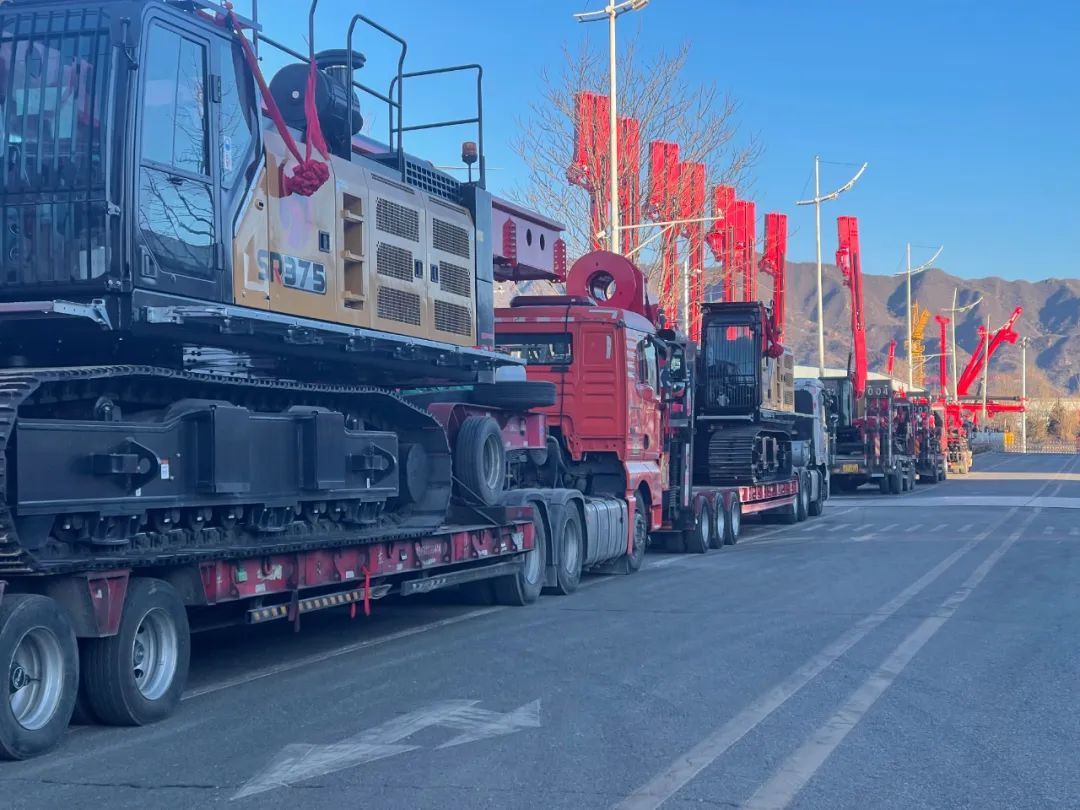 好体育投注网站智造2024年新春发车仪式暨开工典礼在北京南口产业园正式举行。现场,身披大红花的6台好体育投注网站旋挖钻机,3台水平定向钻,一字排开,整装待发。本次发车的旋挖钻机涵盖SR135S、SR175S、SR375S、SR435S多款明星机型,及SD450S水平定向钻。伴随着发车的号令,运输车队浩浩荡荡地驶出了产业园的大门,发往全国各地,为龙年写下红火的开篇。