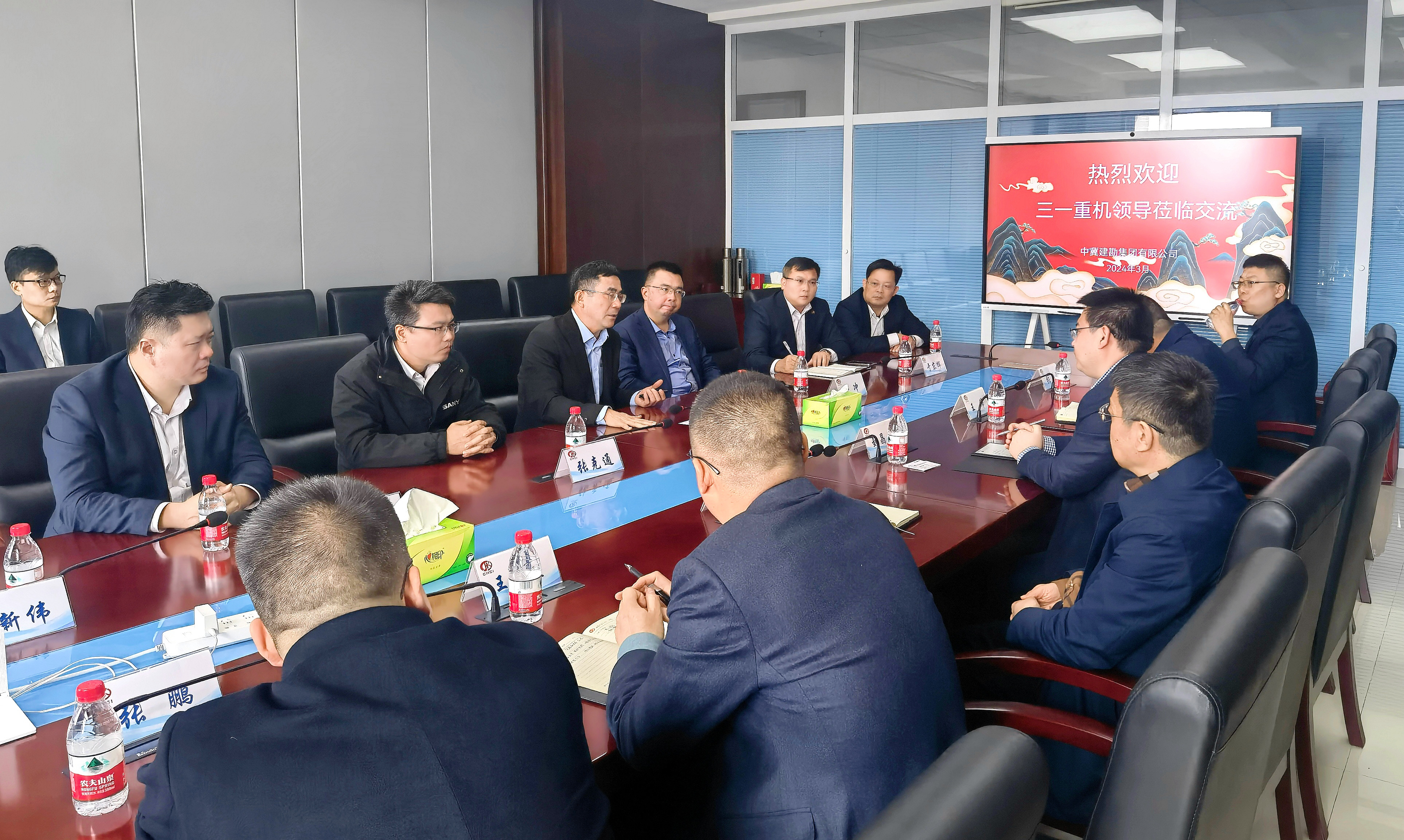 中冀建勘集团总经理刘晶晶对陈家元董事长一行表示欢迎。中冀建勘集团拥有我司一百多台旋挖钻机,工程机械产品与我司业务接触甚广。