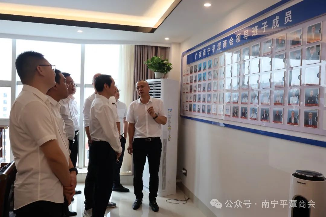 首先,代表团一行参观了南宁平潭商会的办公场所,详细了解了商会的组织架构、会员构成以及近年来的发展情况。商会高仁武会长、张祖忠常务会长、魏伟、高诚执行会长等出席接待并详细介绍了商会的发展历程、会员企业的行业分布以及未来的发展规划。