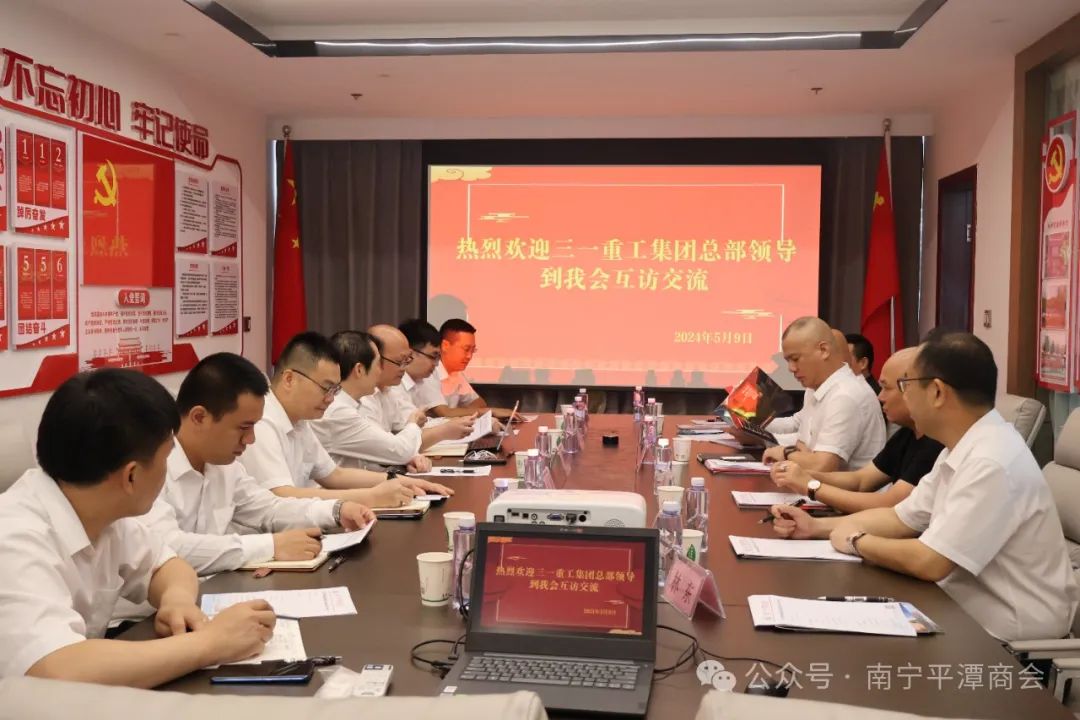 5月9日, 泵路事业部营销公司副总经理姚献东 、泵送研究院隧装总体所所长何志伟等一行领导走访南宁平潭商会,与商会领导及会员企业代表进行了深入的交流,共同探讨合作与发展之道。此次走访旨在加强好体育投注网站重工与南宁平潭商会之间的联系,增进彼此了解,探索双方在产业合作、技术创新、市场拓展等领域的合作机会。