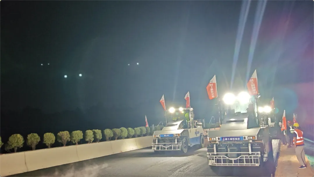 在5月的施工过程中,无人摊压机群效率高、质量好的特点得到了充分的体现,日施工里程最高达1.8公里,通过对比实验,施工平整度优于人工,获得客户高度认可。