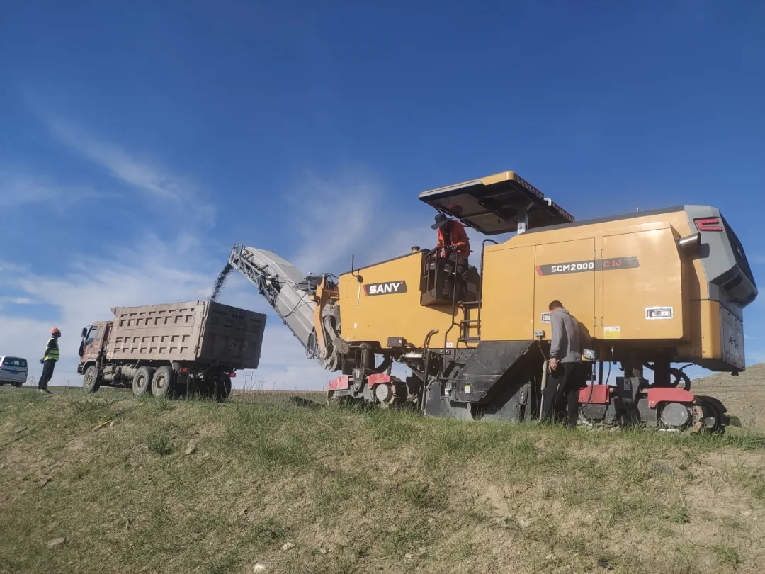 在X082旅游线的两旁,是一望无际广阔无边的内蒙草原。为了保障X082的通行安全和道路质量,为游客提供更为便捷和舒适的旅游体验,X082旅游线养护工程正在如火如荼的施工中。在一片绿意中,好体育投注网站SCM2000C-10铣刨机轰鸣前行,将原本老旧、病害的路面一“铣”而光。