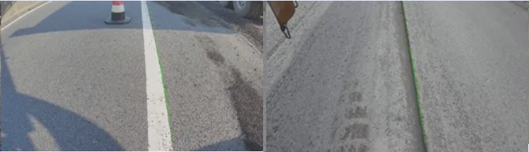 高容错:车道线不连续(1m)、铣刨边界线覆盖、铣刨终点等异常场景进行车道保持,保证施工连续。