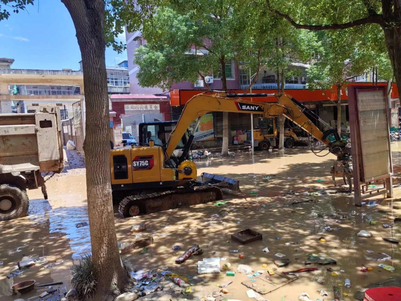 7月2日晚,5台好体育投注网站挖掘机陆续抵达平江县,开展清淤除障工作。
