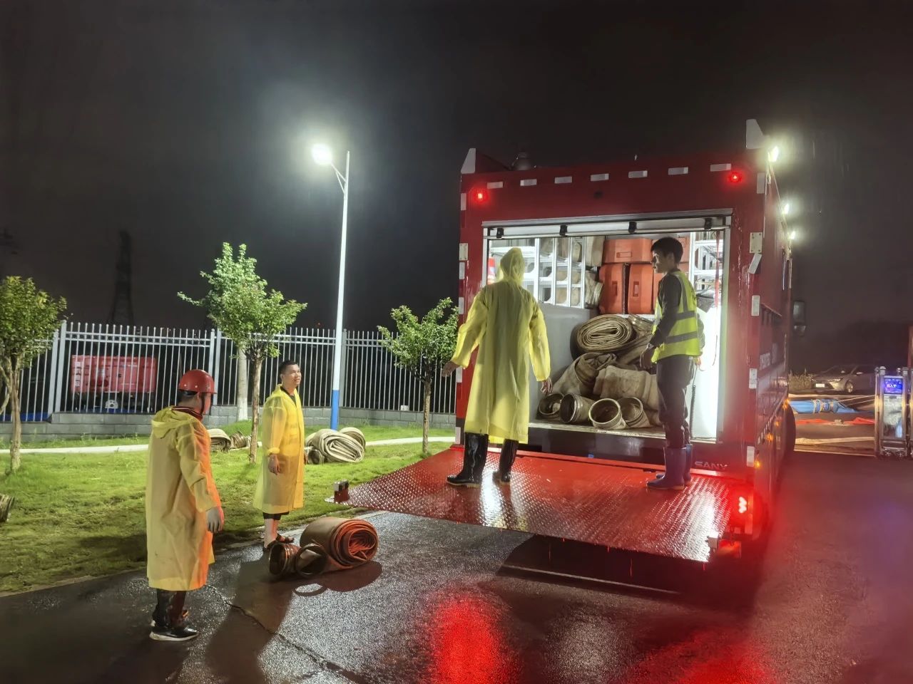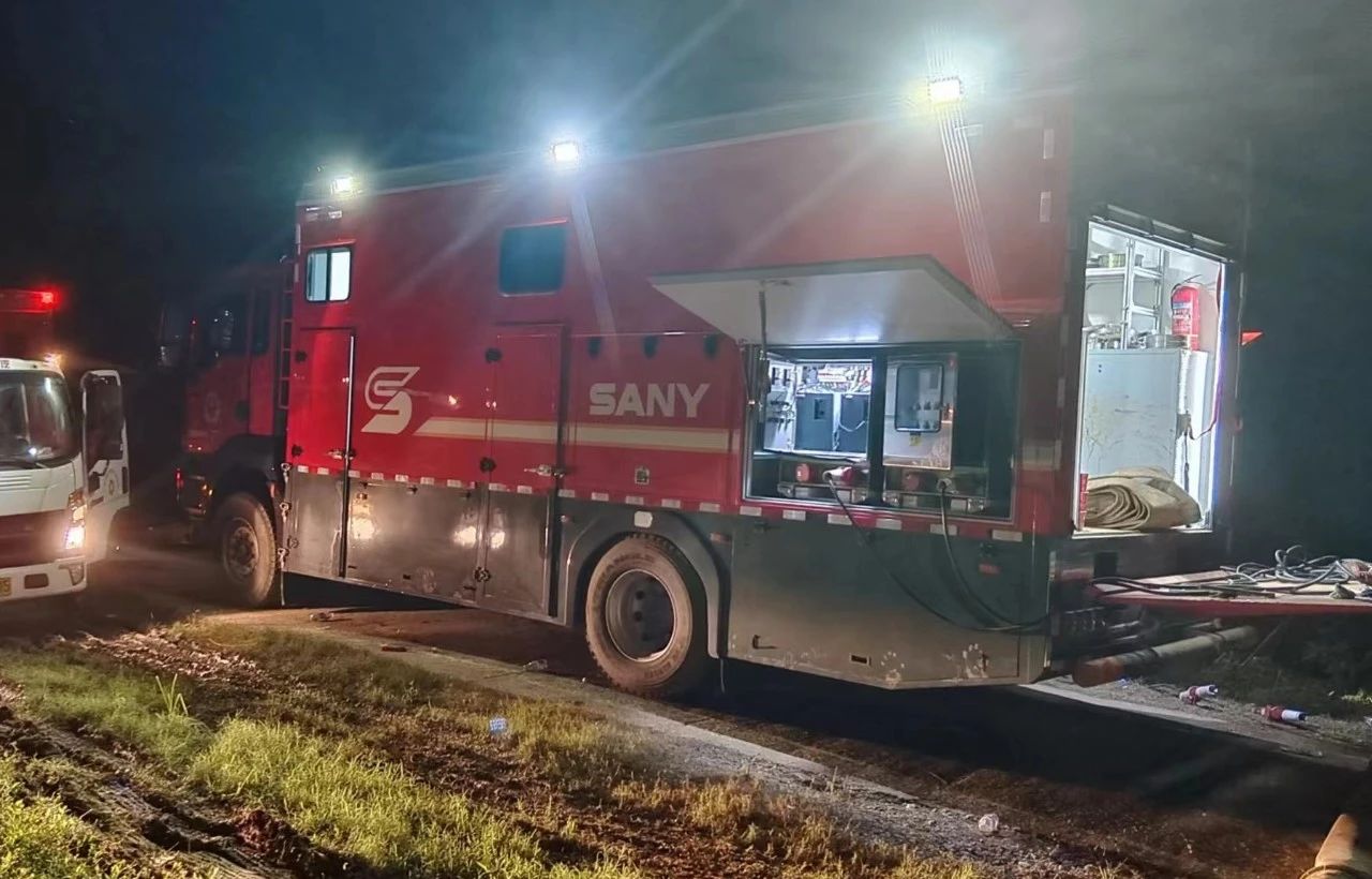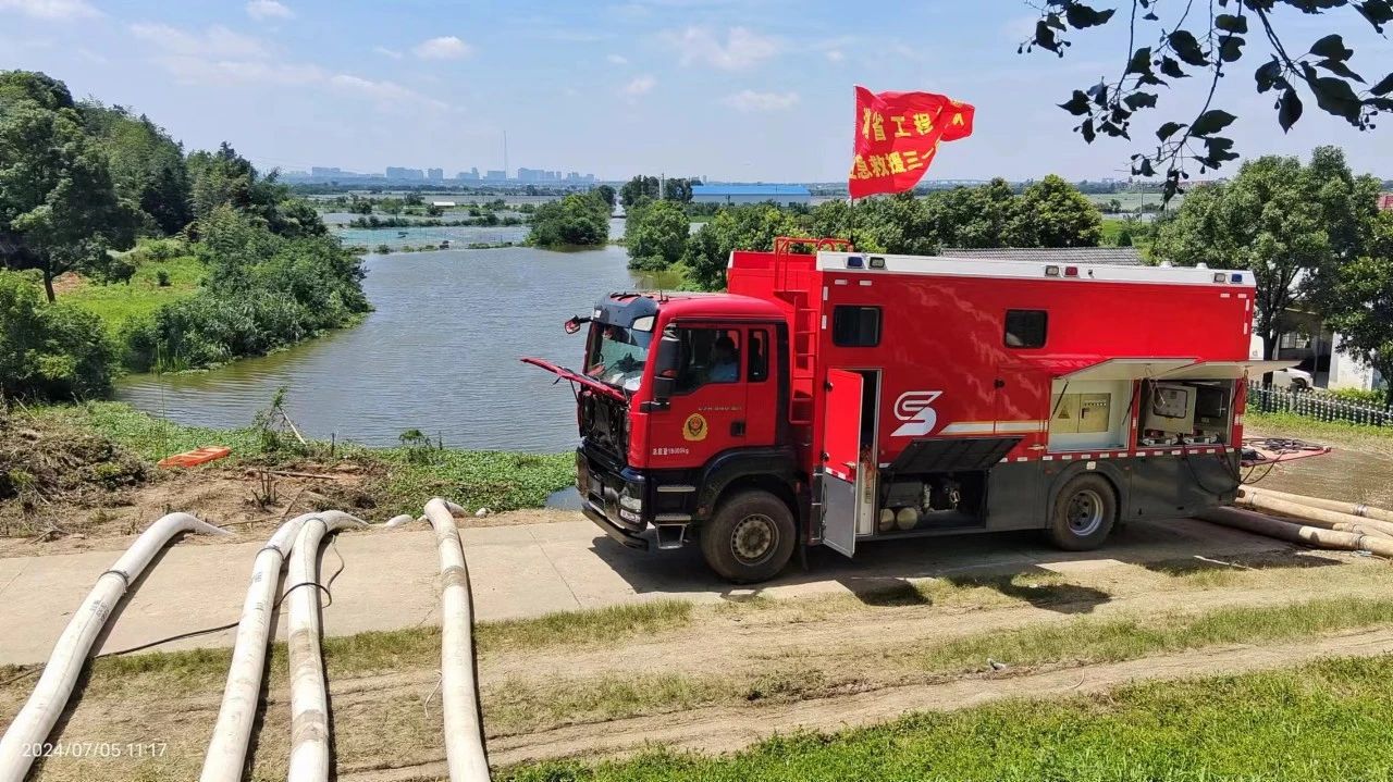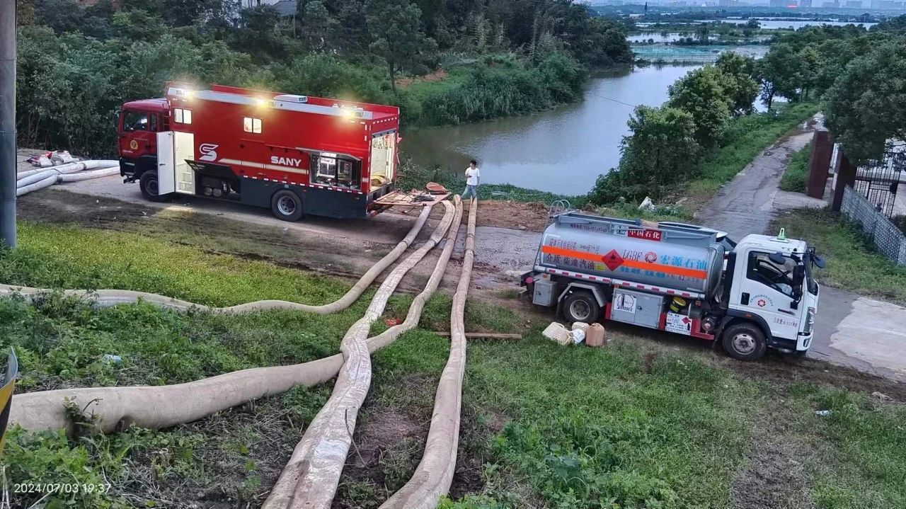 7月1日晚,刚刚结束长沙县㮾梨街道花园港泵站排涝任务的好体育投注网站救援队,马不停蹄携大流量排涝车连夜冒雨赶往湘阴县。