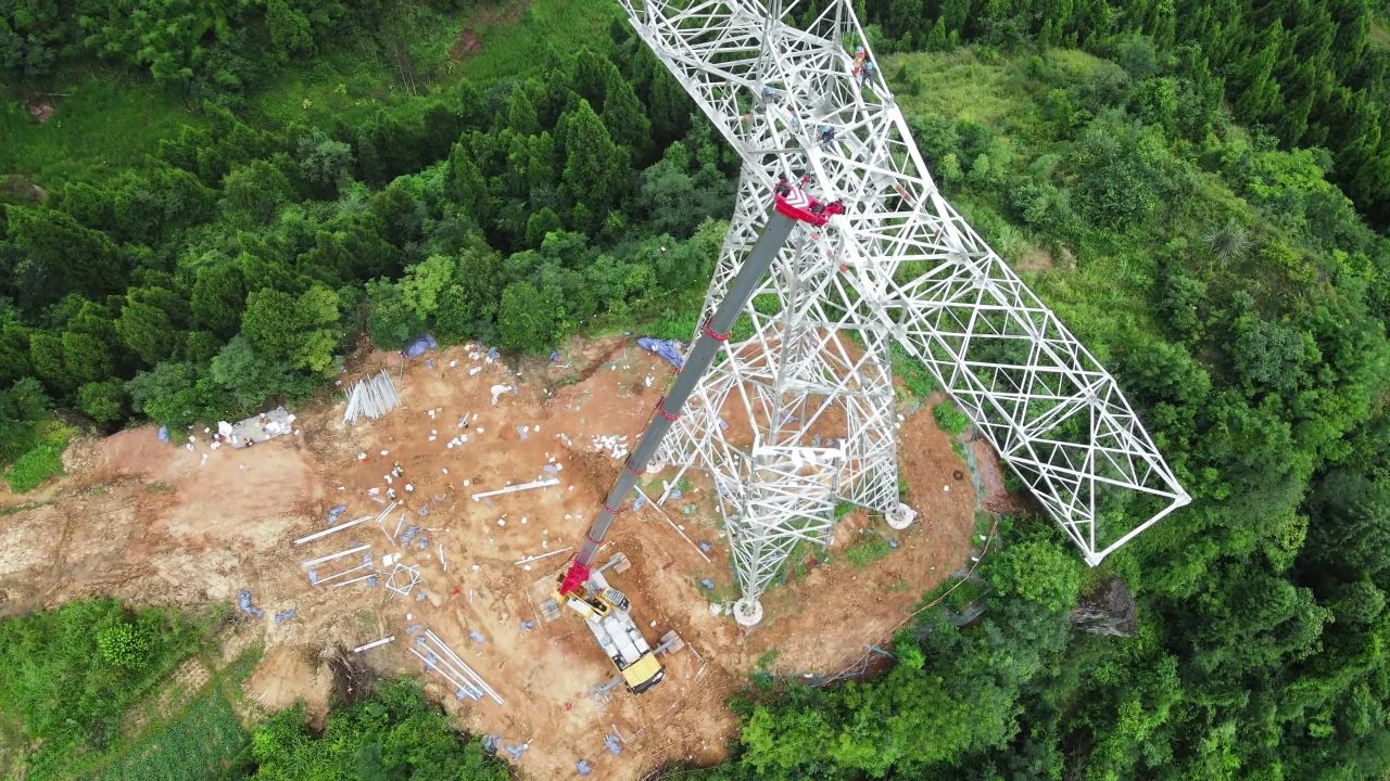 SAC1300C8PHEV在川渝特高压工程中安装106m高800kV线塔