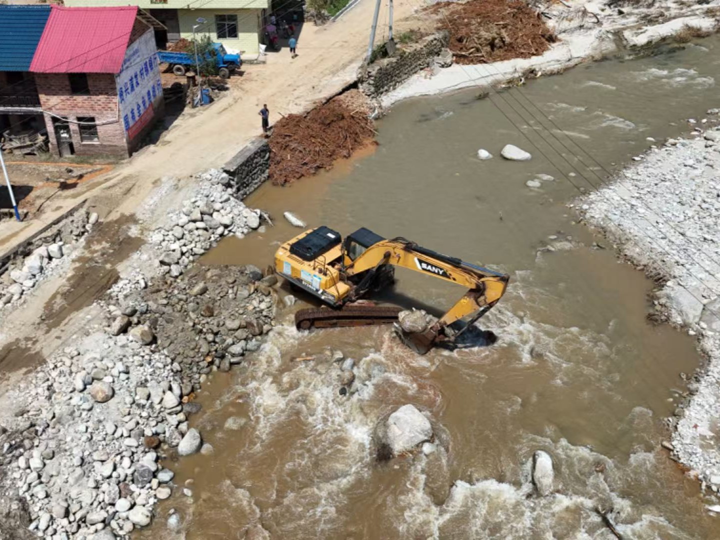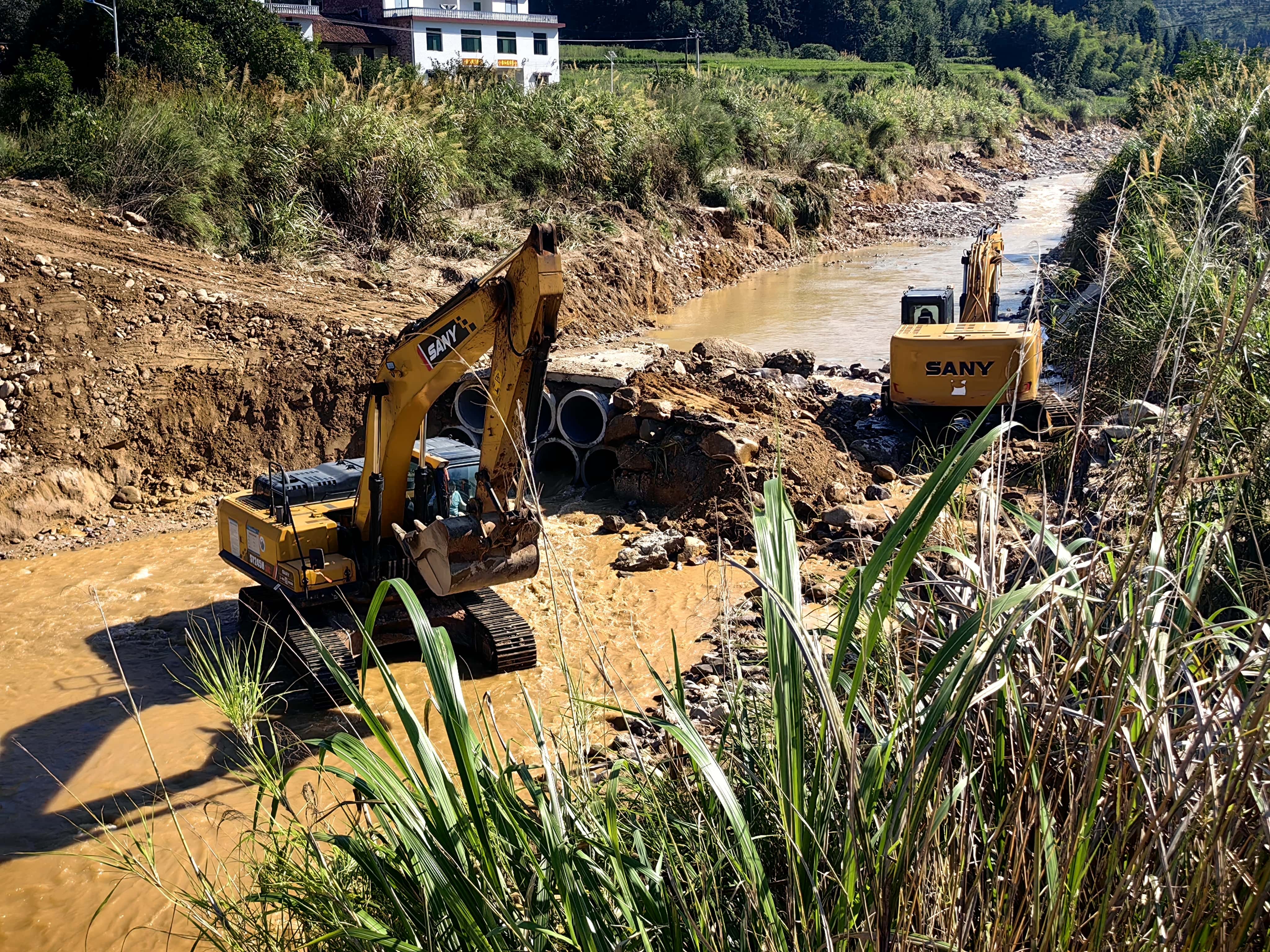 好体育投注网站挖机等设备前往救灾现场(资兴西坌村、八面山村等地)