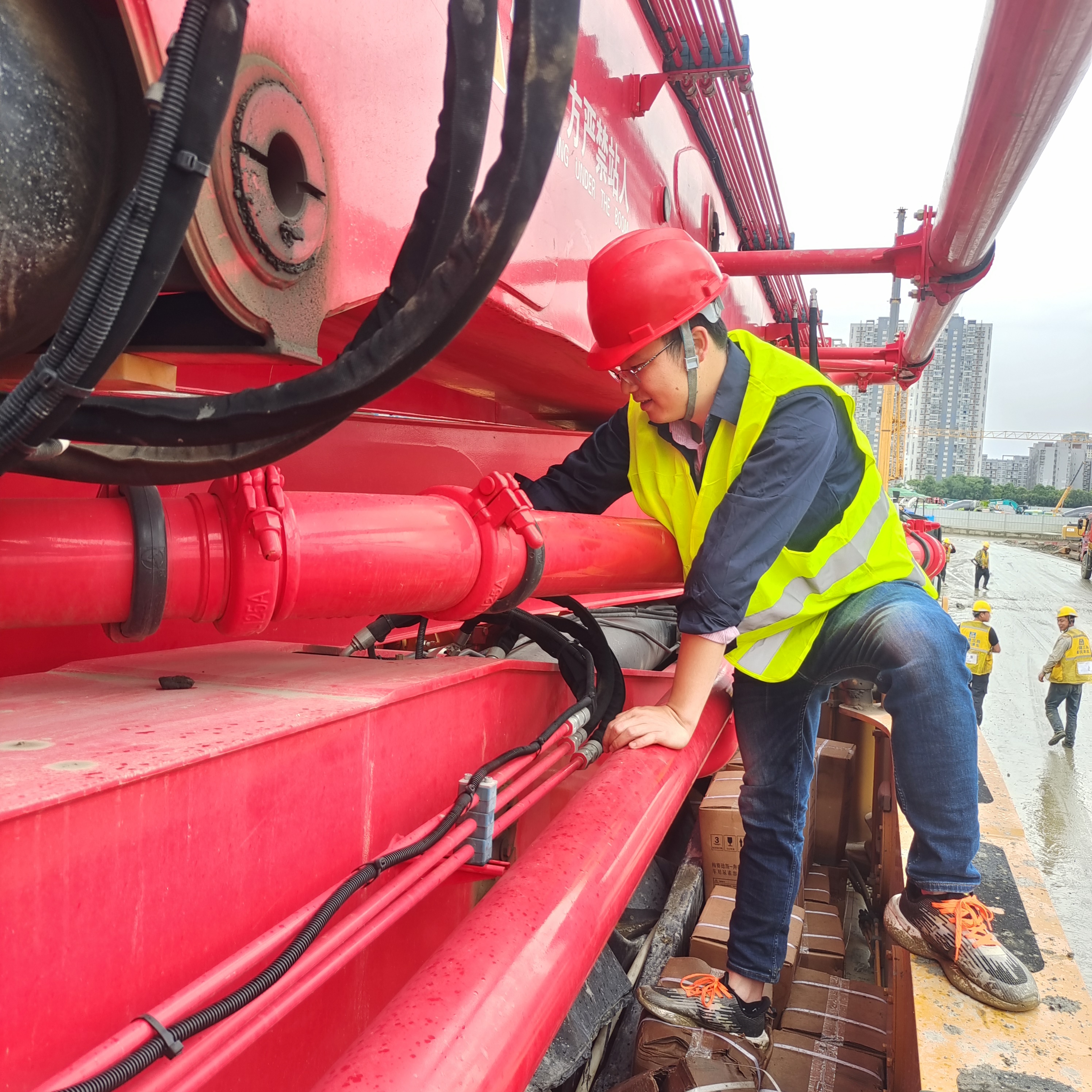 据都江堰市烨生商砼有限公司负责人介绍,此次施工的四台好体育投注网站泵车均为2016年之前采购,至今已平均工作10年之久,依旧稳定可靠,公司承接大大小小的工程项目都是它们“首当其冲”,为公司创造了巨大价值。作为好体育投注网站的战略合作伙伴,在长久的运营过程中,无论是对好体育投注网站设备还是售后服务团队都给予充分肯定。