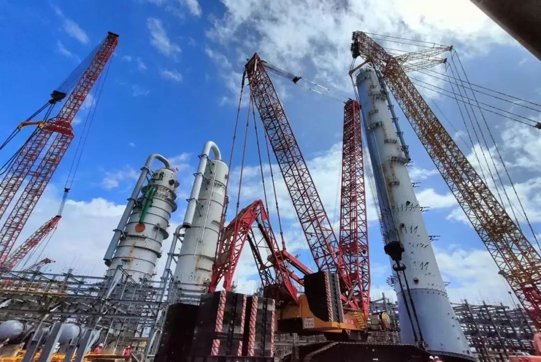 寰球六建2000吨履带吊完成广西石化项目乙烯装置C-3001碱洗塔、2#丙烯塔吊装。