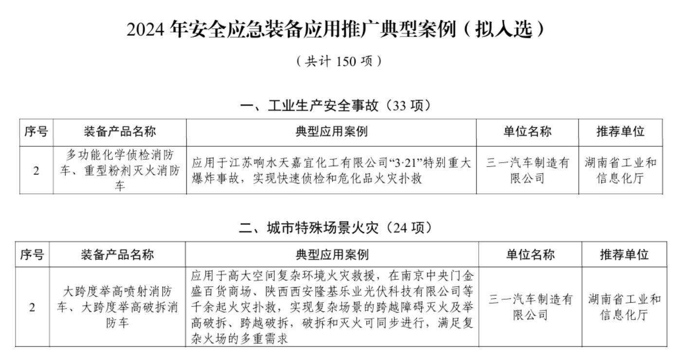 为推动安全应急产业创新发展,近日,经工业和信息化部组织评审,150个装备产品应用案例列入“2024年安全应急装备应用推广典型案例”。