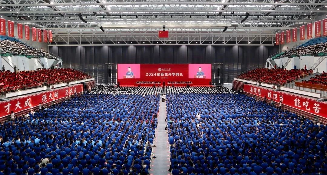 9月11日上午,中南大学在新校区体育馆举行2024级新生开学典礼,1.7万余名2024级新生承载着殷切期望,怀揣着青春梦想,在中南开启人生新征程。