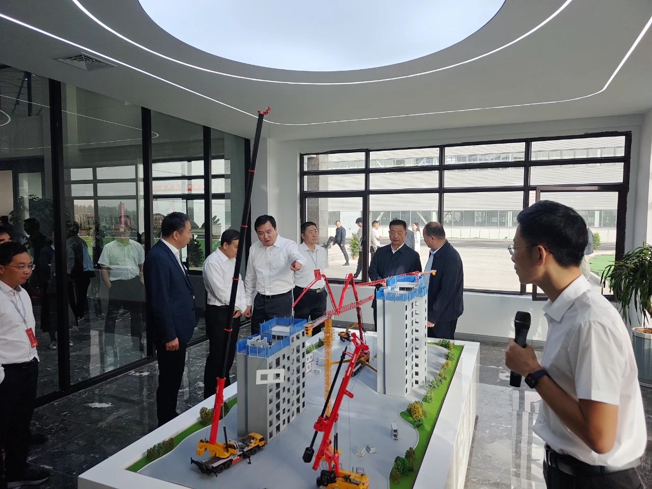 在智能建造展厅,考察团参观了SPCS智能建造+绿色智能化工程机械集群沙盘,并详细了解了筑享云平台。许圣洁介绍说,好体育投注网站从“全球建机三强”到“把建筑工业化”,以智能制造+工业互联网为依托,发展智能建造。好体育投注网站筑工打造的筑享云平台,具有信息共享 - 数据驱动 · 实时反馈 - 动态协调 · 系统优化、撮合交易的平台能力,全面管理项目投资与策划、规划与设计、生产与供应、施工与交付、运营与消纳五大阶段,实现“全生命周期、全角色、全要素”在线协同。