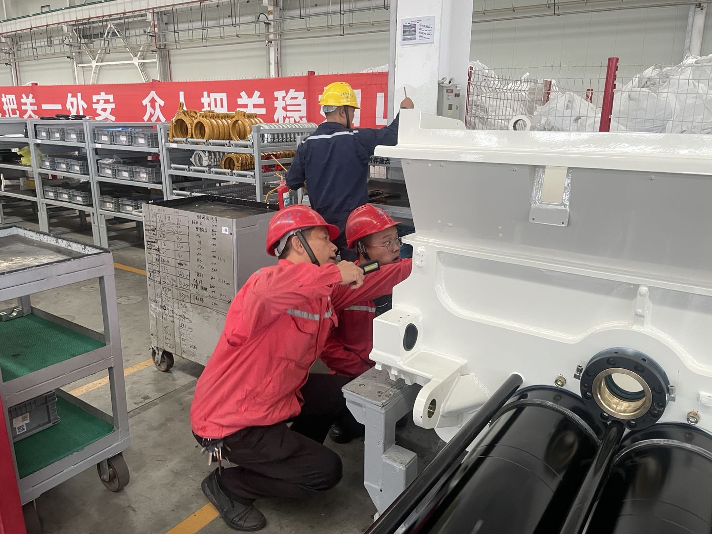 “如期交付”和“质量把控”是对客户生产质量的核心保障。改制班班长梁江东带领改制班全体员工放弃休息时间,加班给印尼、巴西40台国际压路机增加配置,确保主机节后按期发往港口。