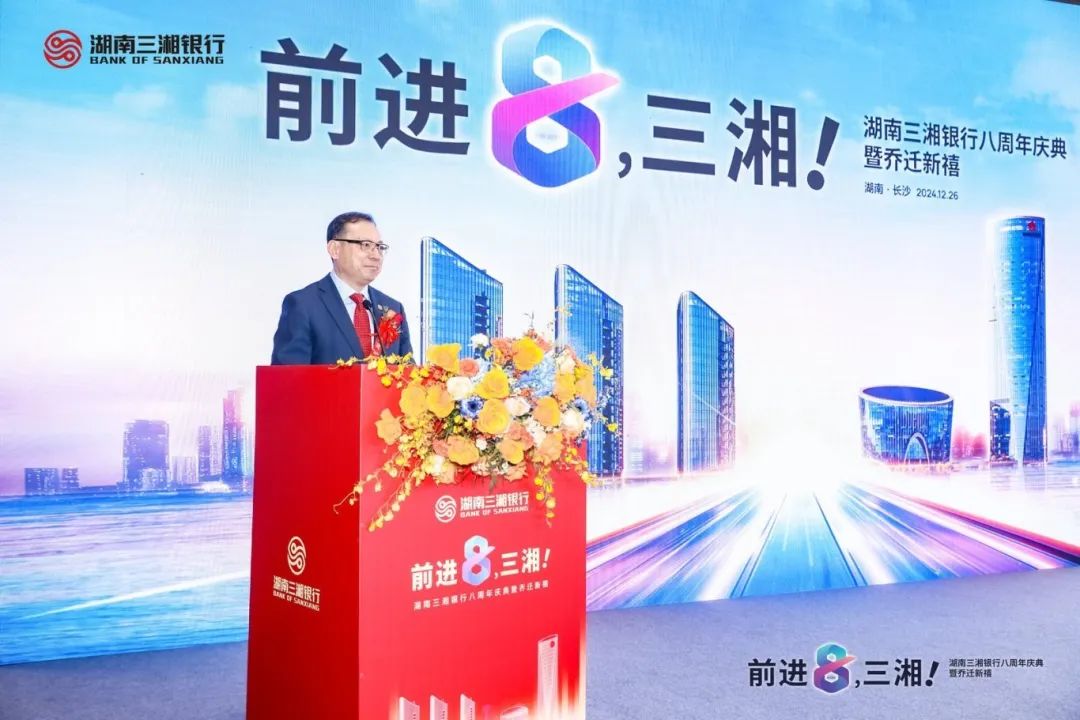 2024年12月26日,三湘银行举行八周年庆典暨乔迁新禧仪式。银行股东代表、董监事、全体高管及员工代表欢聚一堂,共襄盛举,庆祝并见证了这一里程碑时刻。