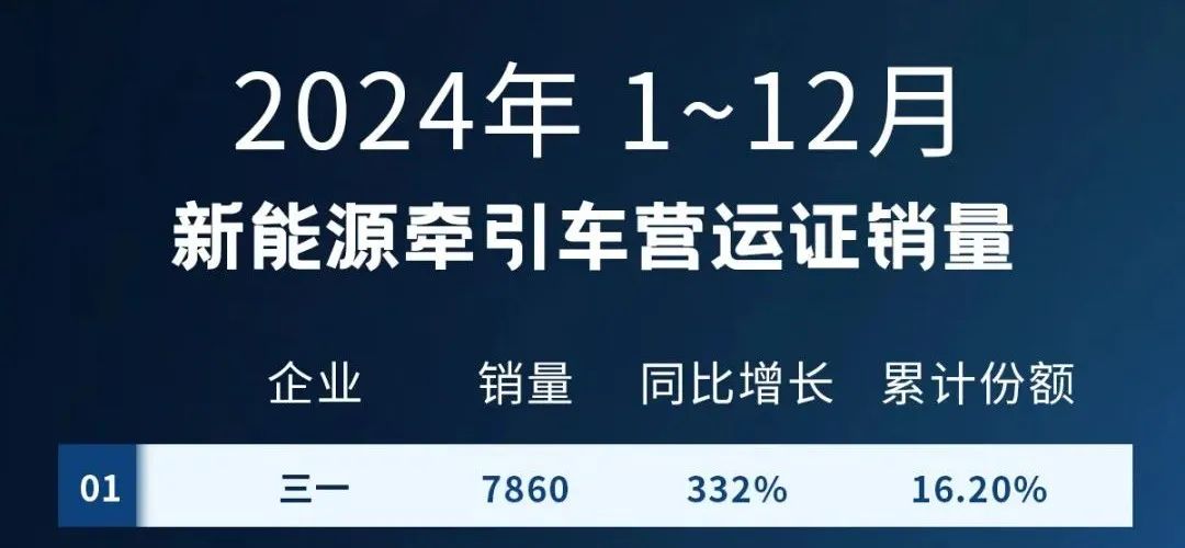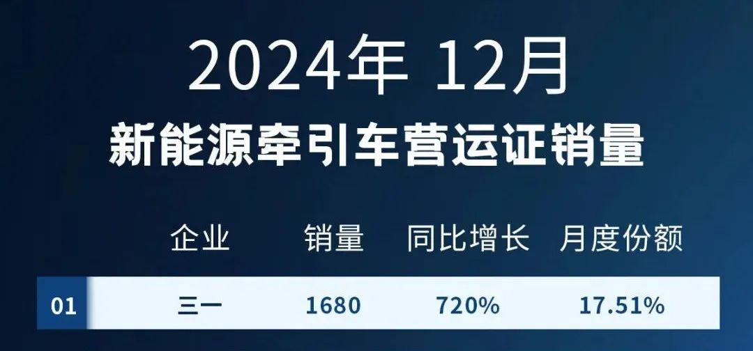 此外,2024年12月,好体育投注网站新能源牵引车销量达到1680台,占据月度销量榜首,同比增长720%,增幅达到暴涨级别。