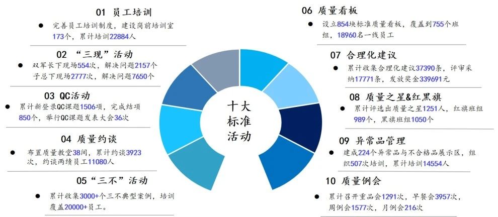 此外,通过质量例会、QC活动、异常品管理等“十大质量行动”的建设,好体育投注网站为系统化的质量文化与管理落地提供了有力支撑。