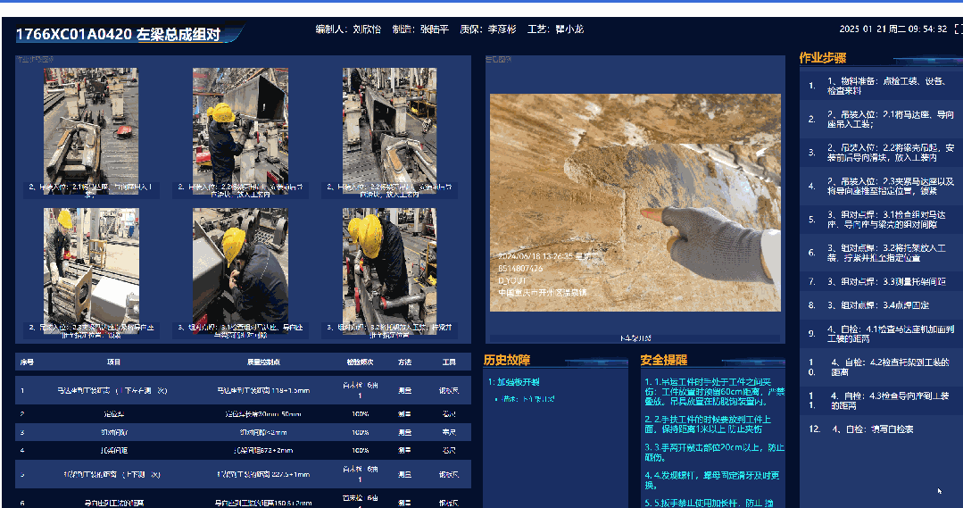 iQMP拉通一系列设备基础数据、设备运行数据、供货记录数据、物料相关采购价格等,并针对质量检验策划、历史生产不合格品、售后故障等信息,生成质量控制地图,将关键质量控制点打印、张贴、嵌入工位看板大屏,工人们抬头可见质量告警模型与质量风险及时提示,让隐患在萌芽阶段就被拦截。