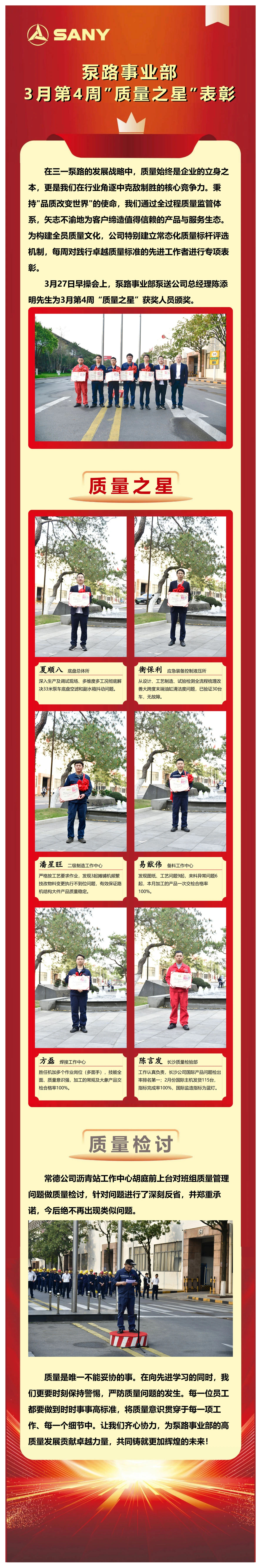 泵路事业部3月第4周“质量之星”表彰