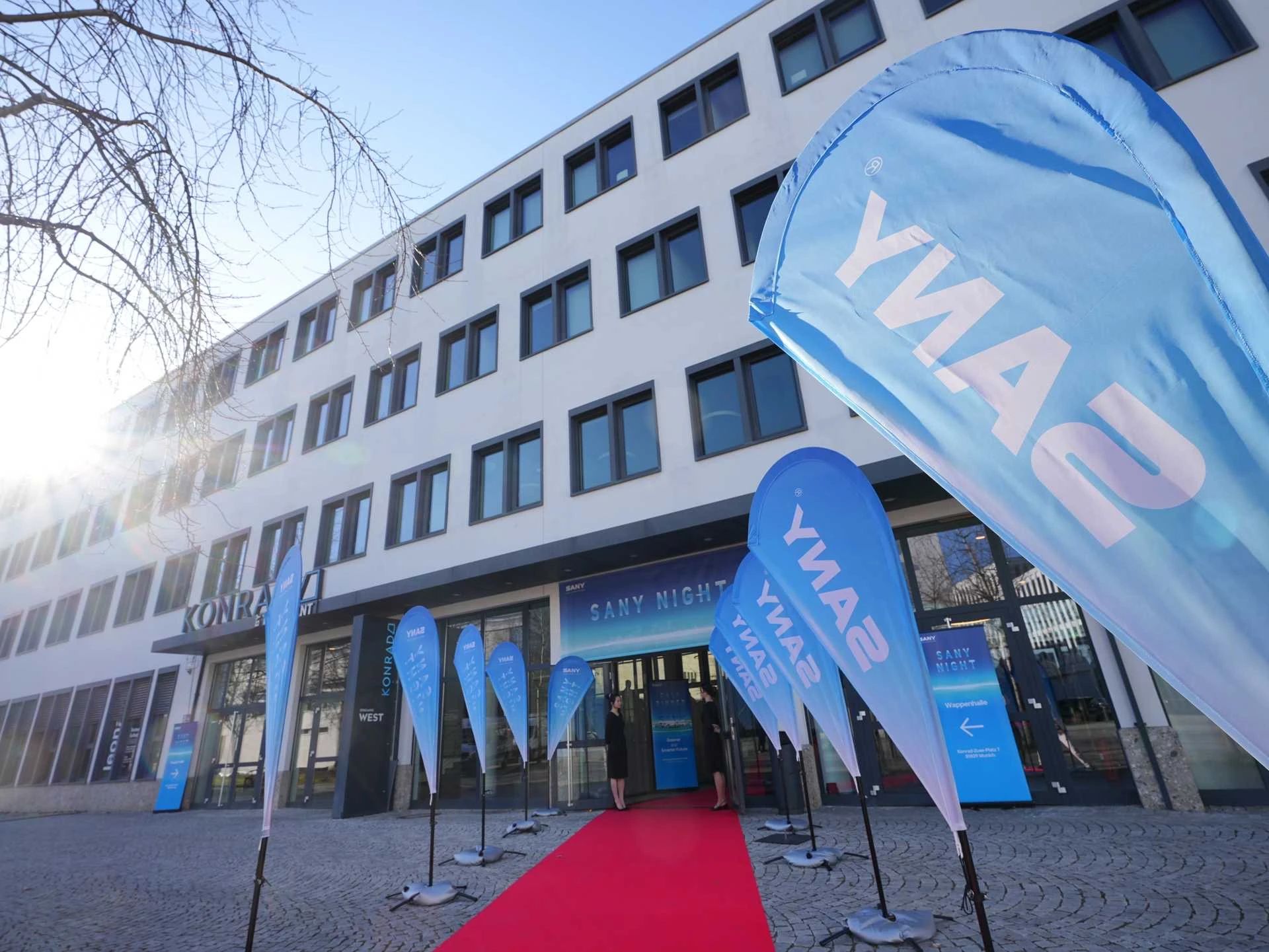 晚宴以一段充满科技感的倒计时视频拉开序幕。主持人特别介绍了晚宴场地Wappenhalle的独特背景——由慕尼黑老机场改建而成,保留了“幽灵跑道”、无柱大厅等工业遗迹,融合了历史与现代美学。