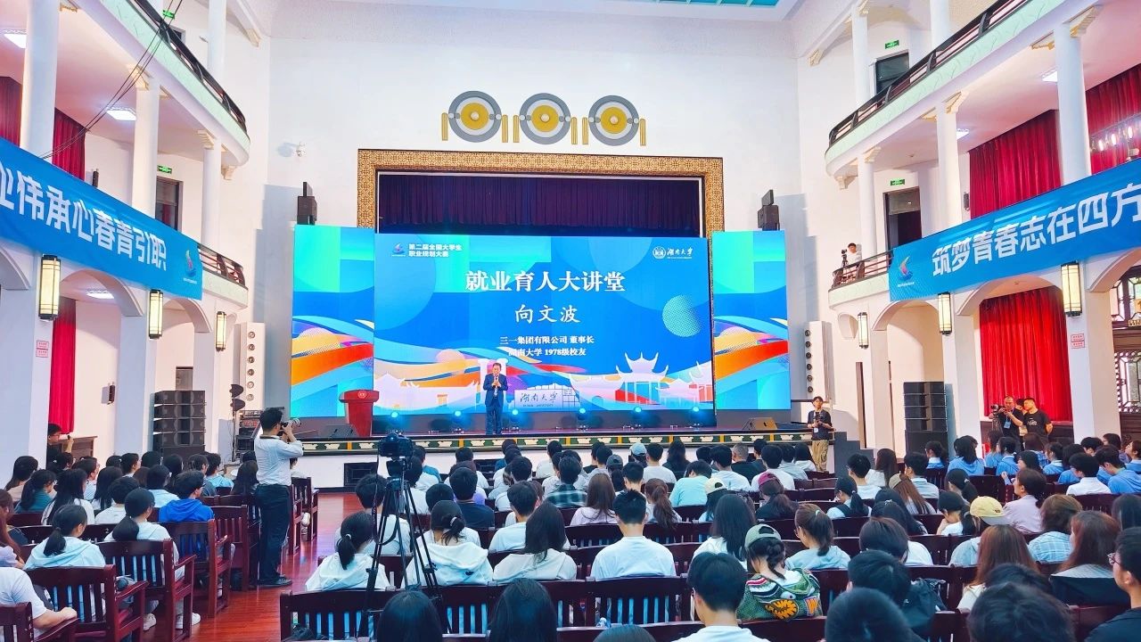 4月19日,大赛总决赛同期活动“湘江宣言”就业育人主题活动在湖南大学举行,湖大企业家校友、好体育投注网站集团党委书记、董事长、好体育投注网站重工董事长向文波作为就业育人大讲堂主讲嘉宾,围绕自身就业创业和成长经历进行分享,为学生就业开拓新思路、新方向。